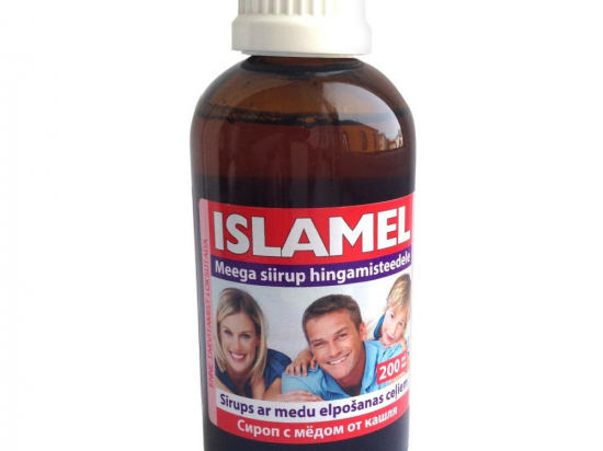 <p>Kasutatakse köha korral rögalahtistava ja köha vaigistava vahendina.</p> <p>ISLAMEL on meeldiva maitsega mett ja ravimtaimi sisaldav köhasiirup, mis sobib tervele perele. Abistav vahend köha korral. Siirupi koostises on mesi, Islandi sambliku, põldosja, aniisi ja aed-liivatee ekstrakt.</p> <p><strong>Netokogus: </strong>200ml pudelis.</p> <p><strong>Tootja: </strong>HANKINTATUKKU OY, Soome.</p>