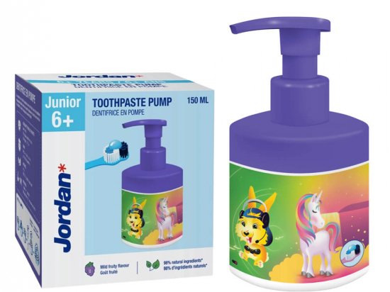 <p>Pumppudelit on tarbijatega testitud. Pump võimaldab lihtsalt doseerida vaid ühe vajutusega ning dosaatoril on lukustus/avamismehhanism.</p> <p>Kontseptsioon põhineb olemasoleval Jordan Kidsi universumil ja edukal "samm-sammult" disainil. Muutke harjamine lõbusaks ja lihtsaks mugavas vormis, mille kasutamisega tulevad lapsed ise toime. Inspireerivate karakterite, värsked värvid ja<br /> populaarsed puuviljased maitsed.</p> <p><strong>Loodud lastele</strong><br /> Maheda maitsega, mida lapsed armastavad. Õrn igemetele. Teeb<br /> harjamise lõbusaks ja lihtsaks. </p> <p><strong>Mugav</strong><br /> Lihtne doseerida vaid ühe vajutusega. Korgi puudumine tähendab nii vanemate kui ka laste jaoks vähem vaeva. Ava/sulgemise funktsiooniga.</p> <p><strong>Jätkusuutlikum valik </strong><br /> Täite- ja taaskasutuspakendiga vähem jäätmeid. 1 pumppudelis hambapasta = 3 tuubis hambapastaga.</p> <p><strong>Motiveeriv</strong><br /> Harjamine võib olla väljakutse... Pumba formaat ja samm-sammult universum inspireerivad häid suuhooldusharjumusi</p> <p>6-12 aastat, 150 ml, vanusele vastav fluoriiditase 1450 ppm</p>