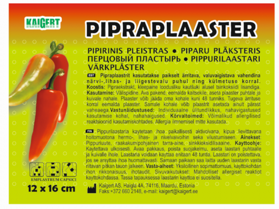 Tootekood: 7014485GTIN: 4745090940978Pipra- ja sinepiplaastrid