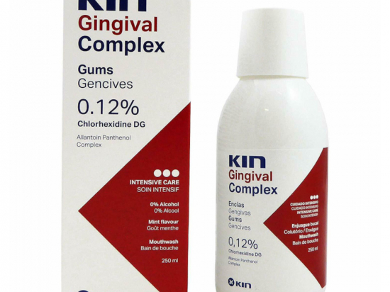 <p>KIN Gingival Complex suuvesi on kasutatamiseks rohke katu, hambajuureümbrise põletiku ja breketite puhul ning suuõõneoperatsioonide järgselt. Sobib ka inimestele, kellel on suuhügieeni läbiviimine raskendatud.</p> <p>Sisaldab 0,12% kloorheksidiini ja Alpantha® kompleksi, antiseptiline, vähendab põletikku ja kiirendab paranemist. Tooted ei sisalda alkoholi ega fluoriidi. Suuvesi on värvitu, seetõttu ei jää võimalik igemete veritsus märkamata.</p> <p><strong>Näidustused:</strong> igapäevaseks suuhügieeniks periodontaalsete protseduuride ajal ja pärast neid. Aitab vähendada hambakattu. Aitab tugevdada igemeid. Ravi kestus: 2-3 nädalat või vastavalt hambaarsti soovitusele.<br /> <br /> <strong>Hoiatused:</strong> hoida laste kättesaamatus kohas. Ei tohi kasutada inimestel, kellel on ilmnenud ülitundlikkust kloorheksidiini suhtes. Ära kasuta hambaarsti poolt soovitatud perioodist kauem. Ära neela alla. Gluteenivaba. Värvitu. Alkoholivaba.</p>