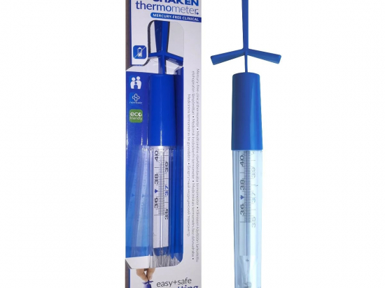 <p>See termomeeter on toodetud ja katsetatud kooskõlas Euroopa Liidu Nõukogu direktiivi 93/42/EMÜ 14. juunist 1993 (koos muudatustega) nõuetega ja standardiga EN 12470-1:2000+A1:2009 „Kliinilised termomeetrid – Osa 1: Maksimumseadmega metalsed vedeliktermomeetrid”.</p> <p>Termomeeter koosneb klaasümbrisest, töövedelikku sisaldavast mõõteotsikust, kapillaartorust ja astmelisest skaalast, mille tagaküljel on lisainfo.</p> <p>Mõõtepiirkond: 35,5–42,0 °C</p> <p>Astmelise skaala tähis: 0,1 °C</p> <p>Mõõtetäpsus: ± 0,1 °C</p> <p>Mõõtmise kestus: vähemalt 5 minutit</p> <p><strong>Tootja: </strong>AS KAIGERT, Haigla 4a, 74116, Maardu linn, Harju maakond, Eesti. e-mail: kaigert@kaigert.ee</p>