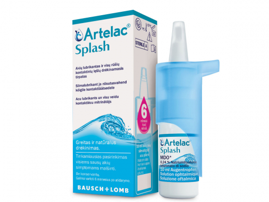<p style="text-align:justify">Artelac® Splash on meie esmavaliku toode kuivade silmade koheseks leevenduseks ja niisutamiseks. See värskendab ja rahustab loomulikul teel teie kuivi silmi, leevendades väsinud, pinges ning isegi vesiste silmade sümptomeid.</p> <p style="text-align:justify">Artelac® Splash sobib kasutamiseks igat tüüpi pehmete ja jäikade kontaktläätsede kandmise ajal. Samuti parandab preparaat kogu päeva vältel märkimisväärselt kontaktläätsede kandmisel mugavustunnet. See sisaldab looduslikku niisutit hüaluroonhapet (naatriumhüaluronaadina), mida leidub terve inimsilma struktuurides ja loomulikus pisarakiles.</p> <p style="text-align:justify">Artelac® Splash on välja töötatud püsima silma pinnal, tagades kohese niisutuse kõikide kuiva silma sümptomite vastu. See on ideaalne toode kõigile, kes kannatavad kuivadest silmadest tingitud sümptomite all, nagu väsinud, pinges, põletustundega ja/või vesised silmad.</p> <p style="text-align:justify">Säilitage temperatuurivahemikus +1 °C kuni +25 °C. Pärast avamist võib seda kasutada 6 kuud.</p> <p style="text-align:justify"><strong>Tootja:</strong> Dr. Gerhard Mann chem.-pharm. Fabrik GmbH Bru2nsbütteler Damm 165/173 13581 Berliin, Saksamaa.</p> <p style="text-align:justify"><strong>Turustaja: </strong>AS Sirowa Tallinn, Salve 2c, 11612 Tallinn, Eesti. Tel: +372 6830700</p>