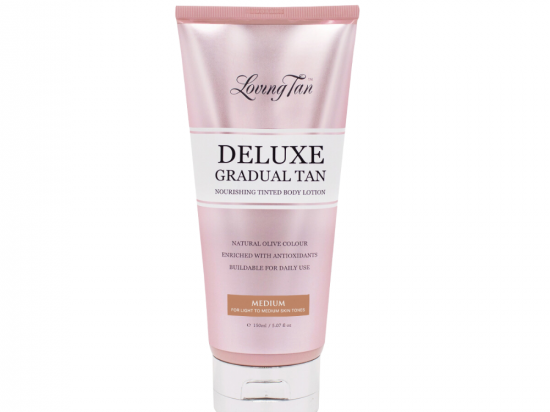 <p>Deluxe Gradual Tan niisutav ja tooniv kehakreem on luksusliku kerge koostisega, mis aitab täiustada ja pikendada teie päevitust kuni kaheks nädalaks. Tooniv kehakreem sobib kasutamiseks ka eraldi seisvana täiusliku nahatooni loomiseks ning tervisliku päevituse saavutamiseks.</p> <p>Loving Tan niisutav ja tooniv kehakreem sisaldab nahka rikastavaid antioksüdante. Acai ekstrakt kaitseb nahka keskkonnamõjude eest ja kohvi ekstrakti sisaldav toitev koostis annab sellele kauni sära ja jumaliku jume. Imeline sheavõi rahustab ja parandab naha elastsust ning jätab selle pehmeks ja siidiseks.</p> <p>Salongi päevitusest inspireeritud Deluxe Gradual Tan isepruunistav kreem sobib suurepäraselt loomuliku jume saavutamiseks ka algajatele. Toitev ja tooniv kreem niisutab igal kasutuskorral sinu nahka ning annab sellele õrnalt kauni pronksivärvi. Kreem rikastab ja pehmendab nahka ning lisab selle loomuliku sära.</p> <p>Selle läbimõeldud koostis võimaldab kreemi ilma vaevata ning triipudeta peale kanda. Kreem kuivab kiiresti ning ei määri riideid. Sobib suurepäraselt tervisliku päevituse esmakordseks saavutamiseks või olemasoleva jume pikendamiseks</p>