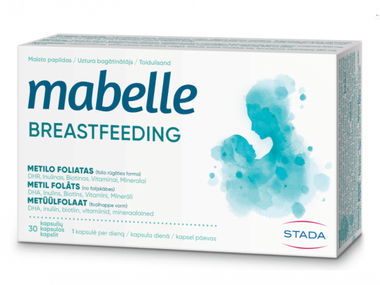 <p>MABELLE Breastfeeding Toidulisand</p> <p>Metüülfolaat (foolhappe vorm) │DHA│Inuliin│Biotiin│Vitamiinid│Mineraalained</p> <p><strong>Folaat </strong>aitab kaasa normaalsele vereloomele, immuunsüsteemi normaalsele talitlusele ning aitab vähendada väsimust ja kurnatust.</p> <p><strong>Dokosaheksaeenhape (DHA)</strong> aitab säilitada normaalset ajutalitlust. Kasulik toime avaldub siis, kui päevas tarbitakse 250 mg DHA-d. </p> <p><strong>Biotiin </strong>aitab kaasa normaalsele psühholoogilistele funktsioonidele ning aitab hoida nahka ja juukseid normaalsena.</p>