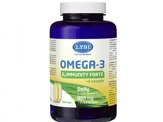 <p>Lysi Omega-3 Immunity Forte kapslid sisaldavad D-vitamiini, mis aitab kaasa immuunsüsteemi normaalsele talitlusele, ning E-vitamiini, mis aitab kaitsta rakke oksüdatiivse stressi eest. DHA aitab säilitada normaalset ajutalitlust ja hoida normaalset nägemist</p> <p><strong>Netokogus </strong>95g</p> <p><strong>Tootja:</strong> Lysi hf., Fiskislod 5-9, 101 Reykjavik, Island.</p> <p><strong>Tootja, pakendaja, turustaja</strong><br /> Oribalt Tallinn AS, Kõrtsi tee 9, 75306 Rae vald, 6515100.<br /> <br /> <strong>Päritoluriik</strong><br /> Island</p>