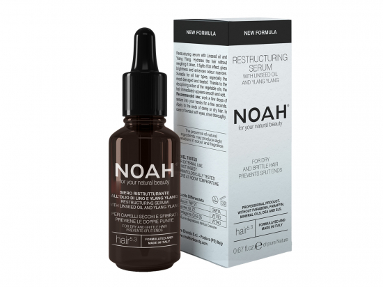 <p>Juustessejäetav linaseemneõliga ja looduslike mineraalainetega juukseseerum kuivadele juustele Itaalia loodustoodete sarjast Noah, mille tooted sisaldavad vaid taimseid ekstrakte - l<strong>õhnav kananga</strong> (<em>Cananga odorata</em>) ehk <strong>ilang</strong> ehk <strong>ilang-ilang) </strong>ja puhtaid eeterlike õlisid ning pole loomade peal testitud.<br /> <br /> Juukseseerum niisutab juukseid ilma neid raskeks muutmata.<br /> <br /> Sobib kasutamiseks kõikidel juuksetüüpidel, ka kõige rabedamadel, kuivematel ning tuhmimatel- seerum tagab juuste niiskuse ja kerguse, tuues välja juuste loomuliku sära ning rõhutades nende värvipigmente.<br /> <br /> Toote koostises sisalduvas linaseemneõlis on rikkalikult oomega-3 rasvhappeid, mis aitab ergutada juuksekasvu.</p> <p><strong>Peamised eelised:</strong></p> <ul> <li> <p>Silub ja vähendab kahusust</p> </li> <li> <p>Lisab läiget ja pehmust</p> </li> <li> <p>Toidab ja kaitseb juukseid</p> </li> </ul>