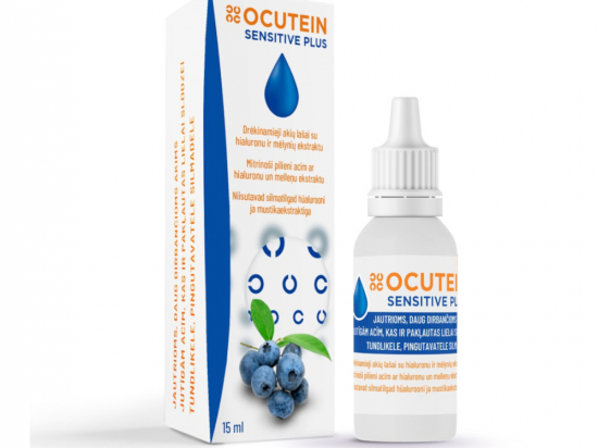 Ocutein Sensitive Plus silmatilgad 15 ml Tootekood: 7009672 GTIN: 4779028552339 Kuivadele silmadele <p>Ocutein Sensitive silmatilgad on meditsiiniline toode, mis hetkega rahustab ja pakub leevendust väga väsinud tundlikele silmadele.</p> <p>Unikaalsed koostisosad leevendavad kuiva silma tunnet ja rahustavad päikesevalgusest, tolmust ja/või õietolmust ärritunud silmi.</p> <p>Toode toimib kogu päeva jooksul ka kontaktläätsi kasutades. Toode omab niisutavat toimet, säilitades niiskust kontaktläätsede pinnal väldib silmade kuivamist, vähendab silmade ebamugavustunnet ja toetab pisarate tsirkulatsiooni.</p> <p><strong>See toode pakub silmadele leevendust:</strong></p> <ul> <li>autojuhtimise ajal;</li> <li>konditsioneeri töötamise ajal;</li> <li>lugemise ajal;</li> <li>arvutiga töötamise ajal;</li> <li>televiisori vaatamise ajal;</li> <li>kontaktläätsede kandmise ajal.</li> </ul> <p>Kõigi nimetatud tegevuste ajal on silma sarvkest kõige enam kuivanud ja ärritatud. Kui kasutate Ocutein® Sensitive niisutavaid silmatilku, ennetate silmas ebameeldivate aistingute tekkimist. Ocutein® Sensitive silmatilgad sisaldavad naatriumhüaluronaati, mis tagab silmade parema niisutuse, kõrvaldab silmade punetuse ja suurendab kontaktläätsede kandja mugavust.</p> <p> <strong>Üldinfo:</strong></p> <ul> <li>Ei tohi kasutada, kui on suurenenud tundlikkus preparaadi mõne koostisosa suhtes.</li> <li>Kõrvaltoimete ilmnemisel, katkestage kasutamine viivitamatult.</li> <li>Kui silmades on põletik, valu või infektsioon, pöörduge silmaarsti poole.</li> <li>Ärge kasutage muid silmatilku, kuna toime võib muutuda.</li> <li>Ärge puhastage pudeli otsikut puhastusvahenditega.</li> <li>Ärge kasutage pudelit või pudelikaant, kui need on kahjustatud.</li> <li>Ärge puudutage pudeli otsa ja vältige selle puutumist silma pinnale.</li> <li>Pärast pudeli esmakordset avamist võib tilku kasutada kuni 30 päeva.</li> <li>Ärge kasutage lahust pärast kõlblikkusaja lõppemist.</li> </ul> <p><strong>Hoiatused.</strong> Säilita lastele kättesaamatus kohas. Pärast kõlblikkusaja lõppemist silmatilku kasutada ei tohi. Pärast pudeli esimest avamist võib tilku kuni 30 päeva. Kui kannate kontaktläätsi, järgige arsti juhiseid ja kontrollige regulaarselt silmi. Silmatilgad Ocutein® Sensitive on steriilne preparaat.</p> <p><strong>Näidustus.</strong> Sobib, kui silmad on kuivad, väsinud või kui kannate kontaktläätsi.</p> <p><strong>Vastunäidustused ja kõrvaltoimed.</strong> Ocutein® Sensitive niisutavaid silmatilku ei tohiks kasutada, kui on konjunktiviit, sarvkestapõletik või silmakahjustus. Ei sobi kasutamiseks neile, kellel on muid süsteemseid haigusi, mis mõjutavad kontaktläätsede kandmist.</p> <p><strong>Säilitamine.</strong> Säilitada kuivas ja pimedas kohas, temperatuuril 15–25 °C.</p> <p><strong>Pakendis:</strong> 15 ml tilkasid.</p> <p> CE 1023</p> <p>Meditsiinipreparaat.</p> <p><strong>Tootja:</strong> „Simply You Pharmaceuticals a.s.“, Roháčova 188/37, 130 00 Praha 3, Tšehhi.</p> <p><strong>Maaletooja:</strong> UAB „SanoSwiss“, J. Galvydžio g. 5-206, LT-08236 Vilnius, Lietuva, info@sanoswiss.com, +370 700 01320.</p> <p>Rohkem infot: <a href="https://ocutein.ee/">https://ocutein.ee/</a></p> | in stock | 15,82 € | Poodi | |