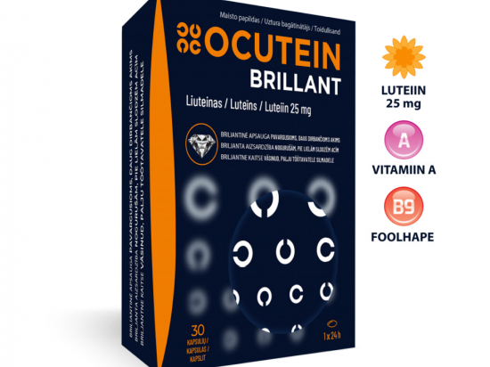 Ocutein Brilliant kapslid N30 Tootekood: 7001458 GTIN: 4779028551165 Toidulisandid silmadele <p>- Aitavad hoida normaalset nägemist (vitamiin A ja tsink)</p> <p>- Aitavad kaitsta rakke osküdatiivse stressi eest (tsink, vask, seleen)</p> <p>- Aitab vähendada väsimust (foolhape)</p> <p>Hea mõte on tugevdada oma silmi antioksüdantide, karotenoidide ja letsitiiniga.</p> <p><strong>Karotenoidide kompleks:</strong></p> <p>Luteiin, zeaksantiin, A-vitamiin</p> <p>Karotenoidide suuremad kogused kuhjuvad võrkkesta kollatähnis (maakulas), kuid aja jooksul karotenoidide kontsentratsioon järk-järgult väheneb.</p> <p><strong>Antioksüdantide kompleks:</strong></p> <p>Tsink, vask, seleen</p> <p>Ultraviolettkiirgus ja muu ioniseeriv kiirgus põhjustab vabade radikaalide ülemäärast tekkimist. Need võivad kahjustada silmaläätse membraane ja valke. Inimese organism on võimeline ennast vabade radikaalide eest efektiivselt nn antioksüdantide abil kaitsma. Need on erinevad ained, mis on võimelised vabu radikaale neutraliseerima. Preparaadile OCUTEIN BRILLANT LUTEIIN 25 mg on lisatud oluline antioksüdantide kompleks.</p> <p>Letsitiin. See on kõige olulisem fosfolipiidide looduslik allikas. Fosfalipiidid on asendamatud rasvad, mis on vajalikud rakumembraanide õigeks funktsioneerimiseks ja mitmete muude looduslike biokeemiliste protsesside jaoks.</p> <p>Foolhape. B-gruppi kuuluv vitamiin.</p> <p><strong>Netokogus: </strong>20,8 g.</p> <p><strong>Maaletooja: </strong>SanoSwiss UAB, Svajoni str. 24-40, Vilnius LT-10100, Leedu.</p> <p><strong>Päritoluriik: </strong>Tšehhi Vabariik.</p> <p>Rohkem infot: <a href="https://ocutein.ee/">https://ocutein.ee/</a></p> | in stock | 14,57 € −9,71 € | Poodi | |