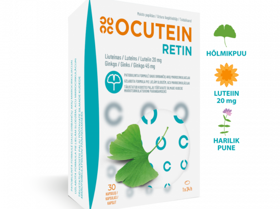 Ocutein Retin Luteiin kapslid 20mg N30 Tootekood: 7002745 GTIN: 4779028551271 Toidulisandid silmadele <p>Sisaldab luteiini ning hariliku pune ja hõlmikpuu ekstrakti, tsinki ja vitamiini A.</p> <p>Vitamiin A aitab hoida normaalset nägemist.</p> <p>Hõlmikpuu, harilik pune, vitamiin C.</p> <ul> <li>Aitab hoida normaalset nägemist</li> <li>Soodustab perifeerset tsirkulatsiooni, mis on eriti kasulik silmadele ja kõrvadele</li> <li>Aitab säilitada veresoonte ja kapillaaride seinte tugevust ja elastsust</li> <li>Aitab kaasa kollageeni normaalsele moodustumisele veresoonte normaalseks talitluseks</li> <li>Aitab kaitsta rakke oksüdatiivse stressi eest</li> </ul> <p><strong>Netokogus: </strong>44,75 g (30 kapslit).</p> <p><strong>Tootja:</strong> Simply You Pharmaceuticals</p> <p><strong>Maaletooja:</strong> SanoSwiss UAB, Svajoni? str. 24-40, Vilnius LT-10100, Leedu.</p> <p><strong>Päritoluriik:</strong> Tšehhi Vabariik.</p> | in stock | 12,44 € −8,30 € | Poodi | |