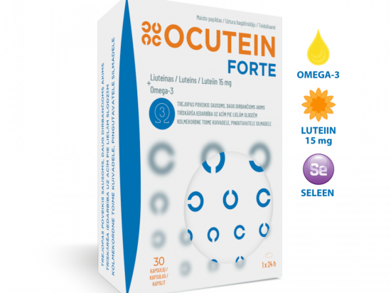 Ocutein Forte kapslid 15mg N30 Tootekood: 53205 GTIN: 4779028551073 Toidulisandid silmadele <p>Preparaati võib manustada mitte ainult eakusest tingitud nägemishäirete leevendamiseks, vaid ka profülaktiliselt silmade tugevdamiseks ja väsimuse kõrvaldamiseks.</p> <p>OCUTEIN FORTE Luteiin 15mg kapslid:</p> <ul> <li>aitavad vähendada silmade väsimust</li> <li>aitavad kaasa nägemisteravusele</li> <li>aitavad kaitsta silma võrkkesta rakke</li> </ul> <h3>Karoteinoidide kompleks</h3> <p>Karotenoidid on looduslikud pigmendid, mida sünteesivad taimed ja mikroorganismid. Luteiin ja zeaksantiin on karotenoidide derivaadid, ksantofüllid, mida kõige enam leidub tumeroheliste lehtedega köögiviljas ja ka munarebus. Neid karotenoide vajab kogu organism ning silmaläätsele ja võrkkesta kollatähnile on need oluliseimad karoteniodid. Luteiini on ka inimeste vereseerumis ning eriti suur on selle kontsentratsioon võrkkestas, just kollatähnis.</p> <h3>Omega-3 kompleks</h3> <p>OCUTEIN FORTE Luteiin 15mgkapsel sisaldab kõrgekvaliteedilist kalamaksaõli, milles sisalduval suurel dokosaheksaanhappe (DHA) ja eikosapentaanhappe (EPA) annusel on oluline osa silma võrkkesta loomuliku talitluse tagamisel ja fotoretseptorite uuenemisel.</p> <p>Manustamisel moodustub silmarakkudes suur DHA ja EPH kontsentratsioon, mis on vajalik silmakudede loomuliku struktuuri ja talitluse tagamiseks:</p> <p>Stimuleerib pisarate moodustumist, seega vältides silmade kuivamist (nt kaua arvutiga töötades).</p> <p>Kaitseb silmi oksüdatsioonikahjustuste eest (nt UV-kiirguse eest).</p> <p>Moodustab silmarakkude membraani põhikoostisosa, nende tarbimine tagab membraanide hea seisukorra.</p> <p>Reguleerib loomulike ainete, mis aitavad leevendada ärritust silmades (nt silmade punetust, kuivust ja turset), sünteesi.</p> <h3>Antioksüdantide kompleks</h3> <p>OCUTEIN FORTE Luteiin 15mg koostises olevad antioksüdandid aitavad silmakudesid kaitsta ja haigusi vältida. OCUTEIN FORTE Luteiin 15mgsisaldab kõiki silmatervise säilitamiseks vajalikke toiteaineid: tsinki, mis toidab pigmentepiteeli, E- ja C-vitamiini ning vaske.</p> <p><strong>Netokogus: </strong>30,9g</p> <p><strong>Tootja: </strong>Simply You Pharmaceuticals</p> <p><strong>Maaletooja: </strong>SanoSwiss UAB, Svajoni str. 24-40, Vilnius LT-10100, Leedu.</p> <p><strong>Päritoluriik: </strong>Tšehhi Vabariik.</p> <p>Rohkem infot: <a href="https://ocutein.ee/">https://ocutein.ee/</a></p> | in stock | 14,18 € −9,45 € | Poodi | |