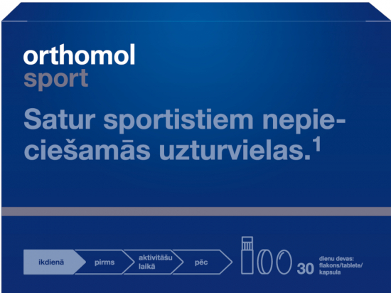 Orthomol Sport N30 Tootekood: 426002269118 GTIN: 4260022691181 Vitamiinid ja mineraalid sportlastele <p>Kuulub Kölni nimekirja – sisaldab ainult sportlastele lubatud toitaineid. Läti olümpiakoondise toetaja.</p> <p>Toitained, mis on olulised spordis hea tulemuse saavutamiseks:</p> <ul> <li>Magneesium ja kaltsium soodustavad lihaste normaalset tööd.</li> <li>B-rühma vitamiinide kompleks, C-vitamiin, kaltsium, magneesium, raud, vask ja jood aitavad tagada normaalse ainevahetuse.</li> <li>B6-vitamiin aitab tagada valkude ja glükogeeni normaalse ainevahetuse.</li> <li>C-vitamiin aitab säilitada immuunsüsteemi normaalset toimimist intensiivse treeningu ajal ja pärast seda.</li> <li>Raud soodustab punaste vereliblede ja hemoglobiini normaalset moodustumist ning soodustab normaalset hapniku transporti kehas.</li> <li>Magneesium soodustab elektrolüütide tasakaalu.</li> </ul> <p>30 (või 7) päevast annust.<br /> Netokaal 765 g (või 178,5 g).</p> <p>Tootja: Orthomol GmbH, Herzogstraβe 30, 40764, Langenfelde, Saksamaa. </p> | in stock | 43,66 € −14,56 € | Poodi | |