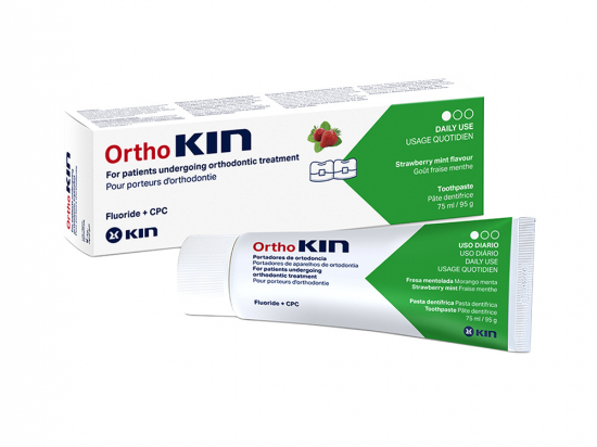 OrthoKIN hambapasta breketikandjatele 75 ml Tootekood: 600201 GTIN: 8436026216040 Hambapastad igemepõletikule <p>Maasika- ja mündimaitseline hambapasta OrthoKIN sobib ideaalselt ortodontilisel ravil olevate patsientidele – breketite, proteeside, hambasildade puhul, kui hammaste puhastamine on raskendatud.</p> <p>Toode sisaldab antiseptilist ja kattu vähendavat tsetüülpüridiiniumkloriidi (CPC 0,05%) ning hambaemaili tugevdavat ja kaariest ennetavat naatriumfluoriidi. Provitamiin B5 ja E-vitamiin kaitsevad ja tugevdavad igemekudet ning kontrollivad hambakatu teket. CPC on positiivse laenguga katioonne pindaktiivne aine, selle ühendid seonduvad bakteriraku välispinnaga põhjustades seda läbides raku huku. CPC on antiseptik, millel on grampostiivsetele bakteritele bakteritsiidne toime ja ka mõningane viiruste ja seente (eriti pärmseente) vastane toime. Naatriumfluoriid taastab hambavaapa, remineraliseerib hambaid ja pidurdab suhkrute muutumist hambaemaili kahjustavateks hapeteks. Provitamiin B5 stimuleerib igemekudet, avaldab taastavat ja rahustavat toimet kahjustunud igemetele ning väldib igemete põletikku, kontrollib katu teket. E-vitamiin on võimas antioksüdant, mis neutraliseerib kahjulikud vabad radikaalid, stimuleerib vereringet igemetes ja kaitseb rakumembraane.</p> <p>Taastab ja niisutab iget, vähendab põletikku ja kontrollib katu teket. OrthoKIN ei sisalda alkoholi ega kloorheksidiini.<br /> <br /> <strong>Näidustused:</strong> breketikandjatele suuhügieeniks (ka proteeside ja hambasildadega suu hügieeniks), kaariese ennetamiseks, hambakatu vähendamiseks.</p> | in stock | 12,59 € | Poodi | |