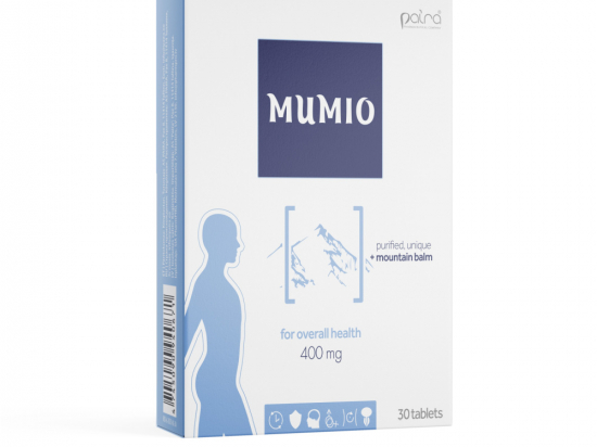 <p>Kesk-Aasia mäestikest pärinev mumio ehk mägipalsam.</p> <p>Aastatuhandeid tuntud biostimulaator, mida inimesed kasutasid noorendamiseks, sisaldab rohkelt mineraalaineid, mikroelemente ning orgaanilisi aineid.</p> <ul> <li>Mumio (shilajit) aitab toetada rasvade ja suhkrute metabolismi ning normaliseerida kehakaalu.</li> <li>Aitab toetada kuseteede ning eesnäärme tervist, seksuaalset funktsiooni meestel ja naistel</li> <li>Aitab toetada mentaalset ja kognitiivset funktsiooni.</li> </ul> <p><strong>Netokogus </strong>6g (30 tabletti)<br /> <br /> <strong>Tootja, pakendaja, turustaja</strong><br /> Turustaja: AS Paira, Pae 8, Tallinn, Eesti. info@paira.ee</p>