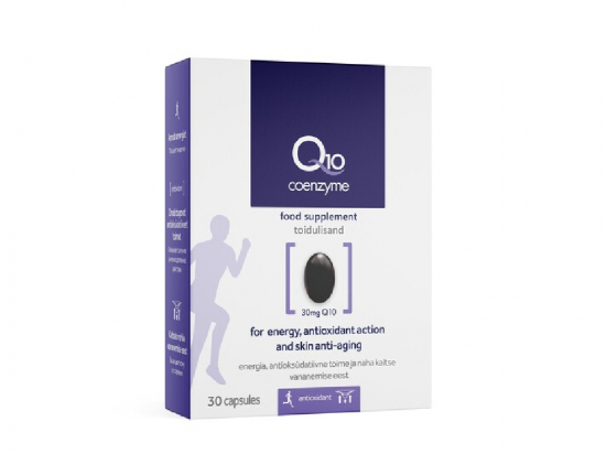 <p>Koensüüm Q10 on organismis esinev ensüüm, mis toodab energiat ja on vajalik iga raku toimimiseks.</p> <ul> <li>Annab energiat</li> <li>Omab tugevat antioksüdantset toimet</li> <li>Kaitseb nahka vananemise eest</li> </ul> <p><strong>Netokogus: </strong>13,41 g (0,447g x 30 kapslit).</p> <p><strong>Tootja:</strong> Suurbritannia</p> <p><strong>Turustaja: </strong>AS Paira, Pae 8, 11414, Tallinn, Eest</p>