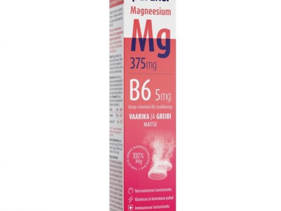 <p>Kihisevad tabletid magneesiumi ja B6 vitamiiniga närvisüsteemi ja immuunsuse toetamiseks.</p> <p>Magneesium aitab kaasa normaalsele lihaste funktsioonile, elektrolüütide tasakaalule, osaleb rakujagunemise protsessis ning aitab hoida luude ja hammaste normaalset seisundit.</p> <p>Magneesium ja Vitamiin B6 aitavad vähendada väsimust ja kurnatust.</p> <p>Vitamiin B6 aitab hoida normaalseid närvisüsteemi ja immuunsüsteemi funktsioone ning tagada normaalset energia- ja ainevahetust. Vitamiin B6 on oluline vere punaliblede normaalses moodustumises.</p> <p>Toidulisand magusainetega.<br /> 20 kihisevat tabletti.<br /> Kõrge vitamiin B6 sisaldusega.</p> <p><strong>Netokogus</strong><br /> 80g<br /> <br /> <strong>Tootja, pakendaja, turustaja</strong><br /> AS PAIRA, Pae 8, 11414 Tallinn, Eesti. info@paira.ee<br /> <br /> <strong>Päritoluriik</strong><br /> Tšehhi.</p>