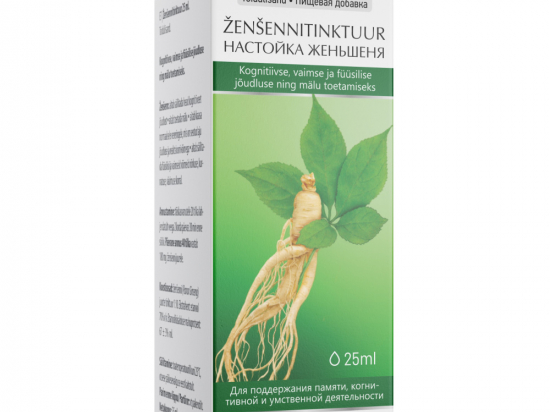 <p>Ženšenn aitab säilitada head kognitiivset jõudlust, aitab toetada mälu, aitab kaasa normaalsele vereringele, mis on seotud aju jõudluse ja reaktsioonivõimega, aitab säilitada füüsilisi ja vaimseid võimeid nõrkuse, kurnatuse, väsimuse korral.</p> <p><strong>Netokogus</strong><br /> 25ml<br /> <br /> <strong>Tootja, pakendaja, turustaja</strong><br /> AS PAIRA, Pae 8, 11414 Tallinn, Eesti. info@paira.ee</p> <p><strong>Päritoluriik</strong><br /> Ukraina</p>
