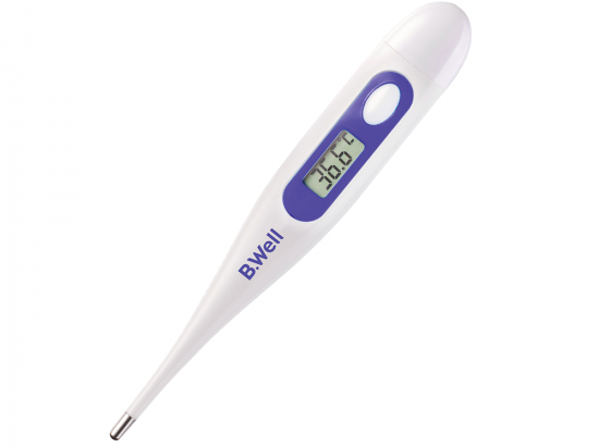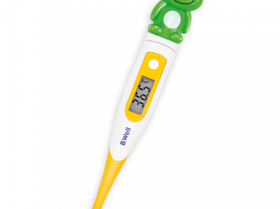 B.Well PRO-06 digitaalne termomeeter Konn N1 Tootekood: 764015639675 GTIN: 7640156396751 Digitaalsed termomeetrid <ul> <li> <p><strong>Paindlik ots</strong> – painduv ots tagab mugavama mõõtmise. Ots paindub kuni 45° ja kohandub kergesti kehakujuga.</p> </li> <li> <p><strong>Mõõtmisaeg umbes 10 sekundit</strong> – kiire ja täpne mõõtmine.</p> </li> <li> <p><strong>Ohutud materjalid</strong> – termomeeter on valmistatud ohutust plastist, ei sisalda elavhõbedat ega klaasi. Kujunduselement (konn) on seadmega püsivalt ühendatud.</p> </li> <li> <p><strong>Veekindel korpus</strong> – spetsiaalsed tihendid kaitsevad seadet vee sattumise eest ning võimaldavad hügieenilist puhastamist.</p> </li> <li> <p><strong>Viimase mõõtmise kuvamine</strong> – seade salvestab ja näitab viimase mõõtmise tulemuse.</p> </li> <li> <p><strong>Helisignaal (piiks)</strong> – annab märku mõõtmisprotsessist ja mõõtmise lõpust.</p> </li> <li> <p><strong>Palaviku alarm</strong> – eriline helisignaal kõrgenenud temperatuuri korral.</p> </li> <li> <p><strong>Temperatuuriühikute vahetamine</strong> – võimalik valida mõõtmistulemus °C või °F.</p> </li> <li> <p><strong>Automaatne väljalülitus</strong> – säästab patareid.</p> </li> <li> <p><strong>Hoiukarp</strong> – mugavaks säilitamiseks.</p> </li> <li> <p><strong>Kasutusala</strong> – sobib koduseks ja professionaalseks kasutamiseks.</p> </li> </ul> | in stock | 5,78 € | Poodi | |