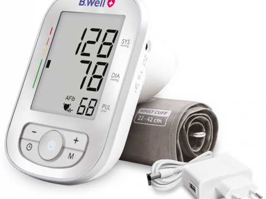 B.Well PRO-22 automaatne vererõhumõõtja N1 Tootekood: 764015639890 GTIN: 7640156398908 Automaatsed vererõhumõõtjad <p><strong>Automaatne vererõhumõõtja PRO-22</strong></p> <ul> <li> <p><strong>Manseti paigaldus- ja liikumisindikaator</strong> – kuvab, kui mansett on õigesti asetatud; vale paigaldus näidatakse veasümboliga.</p> </li> <li> <p><strong>Vererõhu taseme skaala</strong> – vastab Euroopa Hüpertensiooni Seltsi (ESH) klassifikatsioonile.</p> </li> <li> <p><strong>Arütmia indikaator</strong> – tuvastab ebaregulaarse südamerütmi.</p> </li> <li> <p><strong>Anatoomiline mansett</strong> – tagab mugava ja täpse mõõtmise.</p> </li> <li> <p><strong>Universaalne M–L mansett (22–42 cm)</strong> – sobib erineva suurusega õlavarrele.</p> </li> <li> <p><strong>Mälu kuni 99 mõõtmist</strong> – salvestab kuupäeva ja kellaaja.</p> </li> <li> <p><strong>Eemaldatav mansetikate</strong> – lihtsustab puhastamist, on pestav.</p> </li> <li> <p><strong>USB-C toitekaabel ja adapter</strong> – alati käepärast.</p> </li> <li> <p><strong>Hoiukott</strong> – mugav säilitamiseks ja transportimiseks.</p> </li> <li> <p><strong>Patarei tühjenemise indikaator</strong></p> </li> <li> <p><strong>Automaatne väljalülitus</strong></p> </li> </ul> | in stock | 25,19 € | Poodi | |