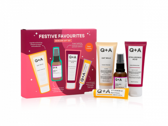 Q+A Festive Favourites Skincare Gift Set komplekt 4 tootega Tootekood: 506048626740 GTIN: 5060486267408 Nahahoolduse komplektid <p>Täiuslikult kokku pandud neljaastmeline näohoolduskomplekt toidab, tasakaalustab, niisutab ja kirgastab nahka – ideaalne nii nahahoolduse uustulnukale kui ka kogenud kasutajale. Q+A tiimi valitud neli lemmiktoodet teevad sellest komplektist tõelise kingituse igale nahahoolduse armastajale.</p> <ul> <li> <p><strong>Alusta hooldust</strong> õrnalt puhastava kaera­piima kreemiga, seejärel kanna nahale tasakaalustav aselaiinhappe seerum, mis rahustab ja ühtlustab nahka. </p> </li> <li> <p><strong>Viimistle hooldus</strong> hüaluroonhappega päevakreemi ja C-vitamiiniga silmakreemiga, et nahk oleks sügavniisutatud ja särav.</p> <h3>KOMPLEKTIS:</h3> </li> <li> <p><strong>Q+A Oat Milk Cream Cleanser 125 ml</strong> – õrn, niisutav puhastus­kreem kaerapiimaga, mis eemaldab meigi ja mustuse, säilitades naha loomuliku tasakaalu.</p> </li> <li> <p><strong>Q+A Azelaic Acid Balancing Serum 30 ml</strong> – aselaiinhappega seerum, mis rahustab, vähendab ärritust, puhastab poore ja ühtlustab jumet. Sobib nii kuivale, rasusele kui ka probleemsele nahale.</p> </li> <li> <p><strong>Q+A Hyaluronic Acid Daily Moisturiser 75 ml</strong> – hüaluroonhappega päevakreem, mis tõstab naha elastsust ja niisutab seeläbi vähendades vananemisilminguid.</p> </li> <li> <p><strong>Q+A Vitamin C Eye Cream 15 ml</strong> – toitva koostisega silmakreem C-vitamiini, kirsiekstrakti ja hüaluroonhappega, mis niisutab, silub ja annab silmaümbrusele sära.<br /> <br /> PEAMISED TOIMEAINED:</p> </li> <li> <p><strong>Aselaiinhape</strong> – vähendab aknet tekitavate bakterite kasvu, rahustab nahka ja ühtlustab nahatooni.</p> </li> <li> <p><strong>Aloe vera ekstrakt</strong> – niisutab, rahustab ja soodustab naha uuenemist.</p> </li> <li> <p><strong>Naatriumhüaluronaat</strong> – sügavniisutav hüaluroonhappe vorm, mis silub nahka.</p> </li> <li> <p><strong>Glütseriin</strong> – niisutab ja tugevdab naha kaitsebarjääri.</p> </li> <li> <p><strong>Kaera-, päevalille-, shea- ja jojobaõli</strong> – toidavad, pehmendavad ja tugevdavad nahka.</p> </li> <li> <p><strong>Niatsinamiid (B3-vitamiin)</strong> – parandab naha kaitsevõimet, vähendab pigmentatsiooni ja ahendab poore.</p> </li> <li> <p><strong>Tokoferool (E-vitamiin)</strong> – tugevdab nahka, vähendab kortse ja parandab elastsust.</p> </li> </ul> | in stock | 30,38 € +9,11 € | Poodi | |