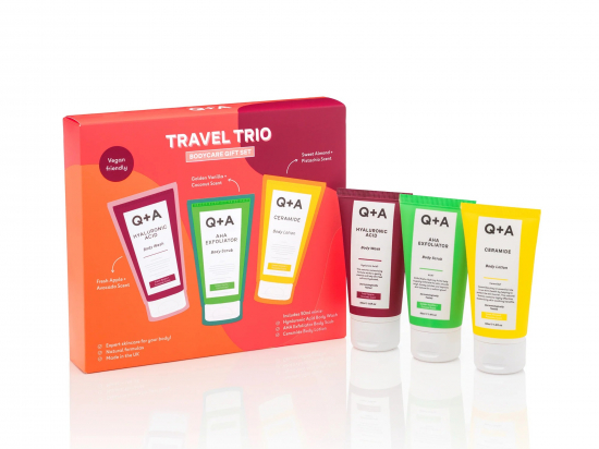 Q+A Travel Trio Bodycare Gift Set kehahooldustoodete komplekt 3x50ml Tootekood: 506048626745 GTIN: 5060486267453 Nahahoolduse komplektid <p>Reisil ei pea sa tegema järeleandmisi kehahoolduses – kasuta seda kolm-ühes niisutava, silendava ja pehmendava toimega komplekti!</p> <p><strong>Travel Trio komplekt</strong> sisaldab hüaluroonhappega dušigeeli, AHA-hapetega kehakoorijat ja keraamiididega kehapiima – kõik 50 ml suuruses, sobides ideaalselt käekotti ja ka käsipagasisse.</p> <p><strong>Q+A Hüaluroonhappega kehapesugeel 50 ml</strong> – pakub duši all maksimaalset niisutust tänu hüaluroonhappe, vetikaekstrakti ja sahhariidisomeraadi segule (annab kauakestva niisutuse - valmistatu <strong>suhkruroost</strong>, mistõttu sobib ka veganitele).</p> <p><strong>Q+A AHA kehakoorija 50 ml</strong> – piisavalt kuid õrnalt abrasiivne, et eemaldada surnud naharakud, jättes naha niisutatuks ja pehmeks. Piimhappe ja glükoolhappe segu parandab naha tekstuuri, muutes selle pehmeks ja elastseks.</p> <p><strong>Q+A Keraamiididega kehapiim 50 ml</strong> – sisaldab skvalaani, ananassist saadud keraamiide ja suhkrukompleksi, mis tugevdab naha kaitsebarjääri ning tagab sügava toitmise ja niisutuse.</p> | in stock | 19,90 € +5,97 € | Poodi | |