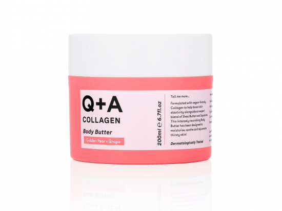 Q+A kollageeni kehavõi 200 ml Tootekood: 506048626650 GTIN: 5060486266500 Kehakreemid igale nahatüübile <p>See kollageeniga kehakreem pakub intensiivset niisutust ja naha tervise toetamist tänu rikkalikule koostisele.</p> <ul> <li> <p><strong>Sheavõi ja kookosõli</strong> toidavad ja pehmendavad nahka, aidates taastada naha loomuliku kaitsebarjääri.</p> </li> <li> <p><strong>Viinamarja- ja päevalilleseemneõli</strong>, samuti <strong>jojobaõli</strong>, on tugevad antioksüdandid, mis kaitsevad nahka vabade radikaalide eest ning parandavad naha elastsust ja siledust.</p> </li> <li> <p><strong>Kollageen ja tripeptiid-29</strong> tugevdavad naha struktuuri ja aitavad ennetada naha lõtvumist, muutes naha nooruslikumaks.</p> </li> <li> <p><strong>Skvalaan</strong> niisutab ja annab nahale siidise pehmuse ilma rasvase kihi tundeta.</p> </li> <li> <p><strong>Kofeiin ja hematite-ekstrakt</strong> ergutavad vereringet ning aitavad võidelda naha väsimuse ja tselluliidimärkidega.</p> </li> <li> <p><strong>Tokoferool (vitamiin E)</strong> ja <strong>naatriumaskorbüülfosfaat (C-vitamiini vorm)</strong> pakuvad tugevat antioksüdantset kaitset ja ühtlustavad naha tooni.</p> </li> <li> <p>Kreemi tekstuur on rikkalik, kuid kiiresti imenduv, jättes naha siidiselt pehmeks ja meeldivalt lõhnastatuks.</p> </li> </ul> | in stock | 17,29 € +5,19 € | Poodi | |