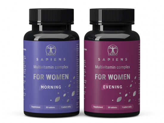 SAPIENS Multivitamiinikompleks naistele N30+N30 Tootekood: 477905239066 GTIN: 4779052390662 Multivitamiinid ja muud toidulisandid naistele <p><img alt="Naistele mõeldud multivitamiinid ilu, energiataseme ja immuunsuse toetamiseks!" src="https://www.sapiensvitamiinid.ee/photos/content/188_Multi_moterims_vertes_img.jpg" style="height:412px; width:576px" /></p> <h3>Naistele mõeldud multivitamiinid ilu, energiataseme ja immuunsuse toetamiseks!</h3> <p>Kompleksi kuulub kokku 29 toimeainet, sealhulgas A-, C-, D-, E-, K- ja B-rühma vitamiinid, seleen, tsink, magneesium, raud, inositool, lükopeen, punaste viinamarjade, küüslaugu ja mustikate taimsete ekstraktid ning mitmed teised olulised komponendid. </p> <ul> <li>Loodud teadlaste poolt, arvestades kohalike kliimatingimuste eripärasid.</li> <li>Olulisemate komponentide tasakaal noortele ja vanematele naistele!</li> <li>Seleen, biotiin, tsink, E-vitamiin - ilu jaoks.</li> <li>Vitamiinid C, D ja A – immuunsuse ja noorusliku energia jaoks!</li> <li>Koostist on täiendatud mustika- ja teiste botaaniliste ekstraktidega.</li> </ul> <p>Naistele mõeldud toidulisandite kompleks koosneb koguni 29 erinevast kasulikust ainest. See sisaldab 13 vitamiini, 9 mineraali, hõlmikpuu ja jõhvika taimeekstrakte, inositooli ja lükopeeni. Võttes arvesse erinevate elementide, vitamiinide ja ekstraktide mõju naise kehale erinevatel päeva- ja ööaegadel ning koostisosade omavahelist koosmõju, on toidulisandi koostis jaotatud kaheks eraldi aktiivsete koostisosade komplektiks - hommikuks ja õhtuks.</p> <p>Toidulisandite kompleksist leiate laias valikus vitamiine ja mineraalaineid. Biotiin aitab säilitada normaalset energia ainevahetust. B6-vitamiin aitab säilitada närvisüsteemi normaalset talitlust. Vitamiin B12 aitab säilitada normaalset psühholoogilist funktsiooni. Niatsiin aitab vähendada väsimust ja kurnatust.</p> <p>Foolhape on naise keha jaoks äärmiselt oluline. Folaadid aitavad säilitada ema kudede kasvu raseduse ajal, aitavad säilitada normaalset aminohapete sünteesi, normaalset vereloomet, normaalset homotsüsteiini ainevahetust, psühholoogilist funktsiooni, immuunsüsteemi aktiivsust, täidavad teatud funktsiooni rakkude jagunemise protsessis ja aitavad vähendada väsimus ja väsimus. Samal ajal aitab kroom säilitada toidu makrotoitainete normaalset ainevahetust ja aitab säilitada normaalset veresuhkru taset. Raud aitab säilitada normaalset kognitiivset funktsiooni, immuunsüsteemi aktiivsust, energiavahetust, punaste vereliblede ja hemoglobiini normaalset moodustumist, aitab vähendada väsimust ja kurnatust ning omab rolli rakkude jagunemisel.</p> <p>Toidulisandi koostist täiendatakse erinevate botaaniliste ekstraktidega, näiteks punase ristiku, hõlmikpuu, hiina ženšenni juure ja küüslaugu taimeekstraktidega. Punase ristiku ekstrakt aitab säilitada normaalset südame-veresoonkonna talitlust ja luude normaalset seisundit.</p> <p>Õhtune kompleks sisaldab äärmiselt rikkalikku oluliste vitamiinide spektrit – D-, E-, A- ja K-vitamiini.</p> <p>D-vitamiin on naistele äärmiselt oluline. See aitab tugevdada luustruktuuri (D-vitamiin aitab säilitada normaalset luude seisundit). Naistele pole vähem oluline E-vitamiin, mis toimib kehas antioksüdandina (E-vitamiin aitab kaitsta rakke oksüdatiivsete kahjustuste eest). Tsink aitab säilitada normaalset viljakust ja paljunemist.</p> <p>Õhtusest toidulisandite kompleksist leiab ka olulisi mineraale nagu magneesium ja seleen. Nahale - jood (Jood aitab säilitada normaalset naha seisundit). Juuste jaoks - vask (vask aitab säilitada normaalset juuste pigmentatsiooni), tsink tagab nägemisorganite sujuvama toimimise (tsink aitab säilitada normaalset nägemist), magneesium kehalihaste talitlusele (magneesium aitab säilitada normaalset lihaste funktsiooni) ja pantoteenhape tagab sujuva vaimse funktsioneerimise (aitab säilitada normaalset vaimset aktiivsust).</p> <p>Lisand sisaldab ka ülipopulaarset mustikaekstrakti. Mustikaekstrakt aitab säilitada normaalset nägemist, kuna omab antioksüdantset toimet ja avaldab positiivset mõju veresoontele.</p> <p><strong>Netokogus:</strong> 60 tabletti</p> <p><strong>Tootja ja turustaja:</strong> Nature Labs UAB, Leedu</p> | in stock | 28,25 € | Poodi | |