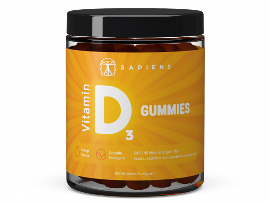 SAPIENS Vitamiin D3 kummikommid N60 Tootekood: 477905239052 GTIN: 4779052390525 Vitamiin D <p><img alt="D3-vitamiini kummikommid - lihastele, luudele, immuunsüsteemile!" src="https://www.sapiensvitamiinid.ee/photos/content/138_Guminukai_D_vertes_img.jpg" style="height:412px; width:576px" /></p> <h3>D3-vitamiini kummikommid - lihastele, luudele, immuunsüsteemile!</h3> <ul> <li>50 µg (2000 RÜ*) D-vitamiini ühes kummikommis.</li> <li>Optimaalne koostis, mis sisaldab 10 korda päevaseid soovituslikke koguseid.</li> <li>Meeldiv viis igapäevast toitumist täiendada väga väärtuslike komponentidega!</li> <li>Esitatud laste ja täiskasvanute lemmik kummikommi kujul.</li> <li>* - rahvusvahelised ühikud</li> </ul> <p>SAPIENS D3-vitamiini kummikommid on maitsev viis oma dieeti selle väärtusliku vitamiiniga täiendada! Üks kummikomm sisaldab kuni 50 µg (10x päevanorm) D-vitamiini ja 60 kummikommi pakist piisab 2-kuuliseks kuuriks.</p> <p>D-vitamiin aitab hoida normaalset:</p> <ul> <li>hammaste ja luude seisundit;</li> <li>lihaste funktsioone;</li> <li>kaltsiumi ja fosfori imendumist ja/või assimilatsiooni;</li> <li>kaltsiumi kontsentratsiooni veres;</li> <li>immuunsüsteemi aktiivsust.</li> </ul> <p>D-vitamiin mängib rolli rakkude jagunemisel.</p> <p>Toidulisand on kummikommide kujul, mis on laste ja täiskasvanute lemmik! Meeldivad apelsinimaitselised närimiskummid ei sisalda loomseid tooteid ja sobivad seetõttu ka taimetoitlastele või veganitele. Sobib lastele alates 6. eluaastast.</p> <p><strong>Netokogus: </strong>60 kummikommi</p> <p><strong>Tootja ja turustaja: </strong>Nature Labs UAB, Leedu</p> | out of stock | 10,50 € | Poodi | |