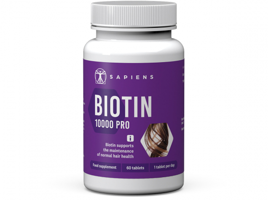 SAPIENS Biotiin 10000 Pro tabletid N60 Tootekood: 477905239029 GTIN: 4779052390297 Universaalsed tooted nahale, juustele ja küüntele <p>Biotiin, muidu tuntud kui vitamiin B7, on B-grupi vees lahustuv vitamiin, mida leidub toiduainetes. Biotiini puudus võib ilmneda nina ja suu ümbruses punetuses, küünte muutustes.</p> <p>SAPIENS Biotiin 10000 PRO toidulisandil on äärmiselt tugev koostis. Üks tablett sisaldab koguni 10000 μg biotiini.</p> <p>Biotiin on laialdaselt tuntud oma mõju poolest juustele (biotiin aitab säilitada juuste normaalset seisundit). Samuti aitab biotiin säilitada naha normaalset seisundit ja aitab säilitada makrotoitainete normaalset ainevahetust.</p> <p>Biotiin aitab säilitada õiget energia tasakaalu (biotiin aitab kaasa normaalsele energia ainevahetusele), avaldab soodsat mõju närvisüsteemile (biotiin aitab kaasa närvisüsteemi normaalsele toimimisele) ja psühholoogilisele funktsioonile (biotiin aitab kaasa normaalsele psühholoogilisele funktsioonile). Samuti aitab biotiin säilitada limaskestade normaalset seisundit.</p> <p><strong>Netokogus: </strong>60 tabletti</p> <p><strong>Tootja ja turustaja: </strong>Nature Labs UAB, Leedu </p> | out of stock | 9,39 € | Poodi | |
