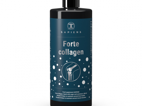 SAPIENS Forte kollageen liigestele 500 ml Tootekood: 477905239017 GTIN: 4779052390174 Lihastele, liigestele ja luudele <p><img alt="Kollageen liigestele – liikumisvabadus!" src="https://www.sapiensvitamiinid.ee/photos/content/155_Kolagenas_forte_vertes_img.jpg" style="height:412px; width:576px" /></p> <h3>Kollageen liigestele – liikumisvabadus!</h3> <ul> <li>Iga annuse kohta on vähemalt 10 g kollageeni nooruslikkuse ja liigeste jaoks.</li> <li>Liigeste helge kolmik - Glükoosamiin, kondroitiin, MSM!</li> <li>B rühma vitamiinid.</li> <li>Kõrge D-vitamiini sisaldus.</li> <li>C-vitamiin – kollageeni paremaks imendumiseks!</li> <li>Antioksüdandid – rikkalik kombinatsioon ekstraktidest: mustikad, teepuud, jõhvikad, ženšenn.</li> <li>Piisab terveks kuuks!</li> </ul> <p>SUUKAUDNE HÜDROLÜÜSITUD KOLLAGEEN FORTE. Üks SAPIENSi kõige populaarsemaid tooteid on I tüüpi hüdrolüüsitud kollageeni suukaudne toidulisand. Mõeldud katma kolme olulist valdkonda: liigesed, nahk/juuksed ja üldine tervis (sünergilised vitamiinid/ekstraktid).</p> <p>Kollageen on valk, mis moodustab kuni 75% meie nahast. See kleepub nagu liim kudede ja organite rakkude külge ning on meie liigeste, kõhre ja luude ehitusplokk.</p> <p>Liikumine on üks olulisemaid elukvaliteedi näitajaid. Liigeste tervis on liikumise puhul üliolulised. Ja kogu keha seisund sõltub sageli liikumisest. Selleks, et liigesed saaksid oma tööd teha, on soovitatav hoolitseda mitte ainult liigeste, vaid ka luude ja lihaste seisundi eest.</p> <p>SAPIENS FORTE kollageen on hüdrolüüsitud, ülitihe kollageen liigeste, luude ja lihaste jaoks, mis on rikastatud D-vitamiiniga, B6- ja B12-vitamiinide ning biotiiniga.</p> <p>Meie teadlased on laiendanud koostist taimsete ekstraktide ja vitamiinidega, mis toimivad sünergiliselt.</p> <ul> <li>Mugav kasutada - lihtne alla neelata</li> <li>Meeldiv apelsini maitse</li> </ul> <p>Funktsionaalne kasu:</p> <p><strong>Pantoteenhape (vitamiin B5)</strong> aitab säilitada normaalset energiavahetust; toetab normaalset steroidhormoonide, D-vitamiini ja mõnede neuromediaatorite sünteesi ja ainevahetust; aitab vähendada väsimuse ja kurnatuse tunnet; toetab normaalset vaimset tegevust.</p> <p><strong>Vitamiin B6</strong> aitab säilitada normaalset tsüsteiini sünteesi; aitab säilitada normaalset energia ainevahetust; aitab säilitada normaalset närvisüsteemi funktsiooni; aitab säilitada normaalset homotsüsteiini ainevahetust; aitab säilitada normaalset valkude ja glükogeeni ainevahetust; aitab säilitada normaalset psühholoogilist funktsiooni; aitab säilitada normaalset punaste vereliblede moodustumist. Vitamiin B6 aitab säilitada normaalset immuunsüsteemi funktsiooni; aitab vähendada väsimustunnet ja väsimust ning aitab reguleerida hormonaalset aktiivsust.</p> <p><strong>Vitamiin B12</strong> aitab säilitada normaalset energiavahetust; toetab normaalset närvisüsteemi funktsiooni; aitab säilitada normaalset homotsüsteiini metabolismi; toetab normaalset psühholoogilist funktsiooni. B12-vitamiin aitab vähendada väsimustunnet ja väsimust. Vitamiin B12 mängib rolli rakkude jagunemisel.</p> <p><strong>Biotiin</strong> aitab säilitada normaalset energia ainevahetust. Biotiin aitab säilitada toitainete makrotoitainete normaalset ainevahetust.</p> <p><strong>Botaanilised ekstraktid</strong>: viinamarjaseemne ekstrakt (aitab kaitsta rakke oksüdatiivsete kahjustuste eest), Euroopa oliivilehe ekstrakt, kibeda sidruni vilja ekstrakt, Hiina ženšenni juure ekstrakt (aitab vähendada väsimust ja säilitada elujõudu), suure jõhvika vilja ekstrakt, Hiina teepuu lehe ekstrakt, mustika ekstrakt.</p> <p><strong>Netokogus:</strong> 500ml</p> <p><strong>Tootja ja turustaja:</strong> Nature Labs UAB, Leedu</p> | in stock | 26,92 € | Poodi | |