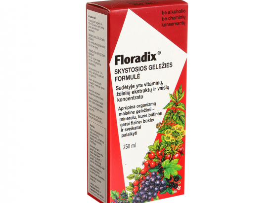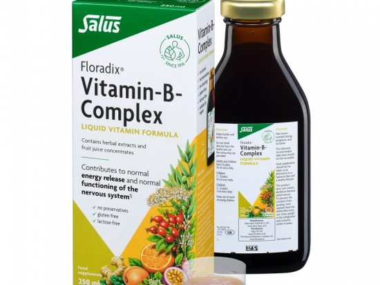 <p>Päevane annus sisaldab piisavas koguses organismile vajalikke vitamiine B1, B2, B6, B12 ning niatsiini ja biotiini, mis aitavad kaasa normaalsele energiavahetusele ja närvisüsteemi normaalsele talitlusele.</p> <p>Vitamiinid B2, B6 ja B12 ja niatsiin aitavad vähendada väsimust ja kurnatust. Lisaks aitab tiamiin kaasa normaalsele südametalitlusele.</p> <p>Vitamiinid B6 ja B12 aitavad kaasa vere punaliblede normaalsele moodustumisele ning immuunsüsteemi normaalsele talitlusele.</p> <p>Biotiin ja niatsiin aitavad hoida nahka normaalsena ning aitavad kaasa normaalsetele psühholoogilistele funktsioonidele.</p> <p>Floradix Vitamiin B-kompleks ei sisalda alkoholi, säilitusaineid, värvaineid ega tehislikke lõhna- ja maitseaineid. Toode on gluteeni- ja laktoosivaba ning sobib ka taimetoitlastele ja veganitele.</p> <p><strong>Netokogus</strong><br /> 250ml<br /> <br /> <strong>Tootja, pakendaja, turustaja</strong><br /> Tootja: Salus-Haus, 83052 Bruckmühl, Saksamaa.<br /> Maaletooja: AS oribalt Tallinn, Kõrtsi tee 9, Lehmja küla, Rae vald 75306, Eesti<br /> <br /> <strong>Päritoluriik</strong><br /> Saksamaa</p>