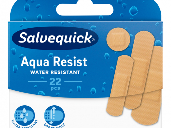 <p>Kleepuvad tihedalt nahale, on painduvad ja elastsed. Plaastrite ümarad servad aitavad püsida paremini nahal ning parendavad kleepumist. Pakendis 20 plaastrit.</p> <p><strong>Salvequick Aqua Resist plaastrid:</strong></p> <ul> <li>Veekindlad</li> <li>Hingavad</li> </ul>