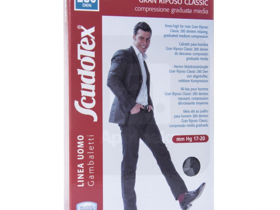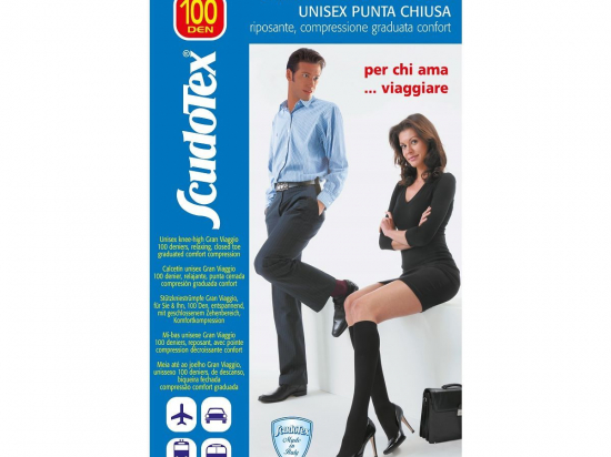 <p>Kerge kompressiooniga reisipõlvikud, elegantsed, järk-järgulise elastsusega. Toetab jalgu hüppeliigese kohal ning hoiab ära väsimuse ja tursed, ennetab veenitromboosi. Sobib inimestele, kes reisivad palju lennukiga, autoga, rongiga või bussiga, kus jalaruum on väike. Eriti soovitatakse lennureisijatele, kuna vähendavad trombitekke riske, mis on seotud lennuki salongi õhurõhuga. Reisipõlvik valitakse jalanumbri järgi.</p> <p>ScudoTex rõhuga tugisukad soodustavad tänu astmelisele rõhujaotusele venoosset vereringet ja lümfiringet, hoides ära tursed ja vere kogunemise jalaveenidesse ning vähendavad veenitromboosi tekke riski. Rõhk sukkades on tugevaim pahkluul ja väheneb sujuvalt kuni reie keskosani, suunates verd südame poole. Tugisukkade rõhku mmHg näidatakse millimeetrit elavhõbedasamba kohta. DEN näitab sukaniidi elastsust, mitte suka paksust ega rõhku.</p>