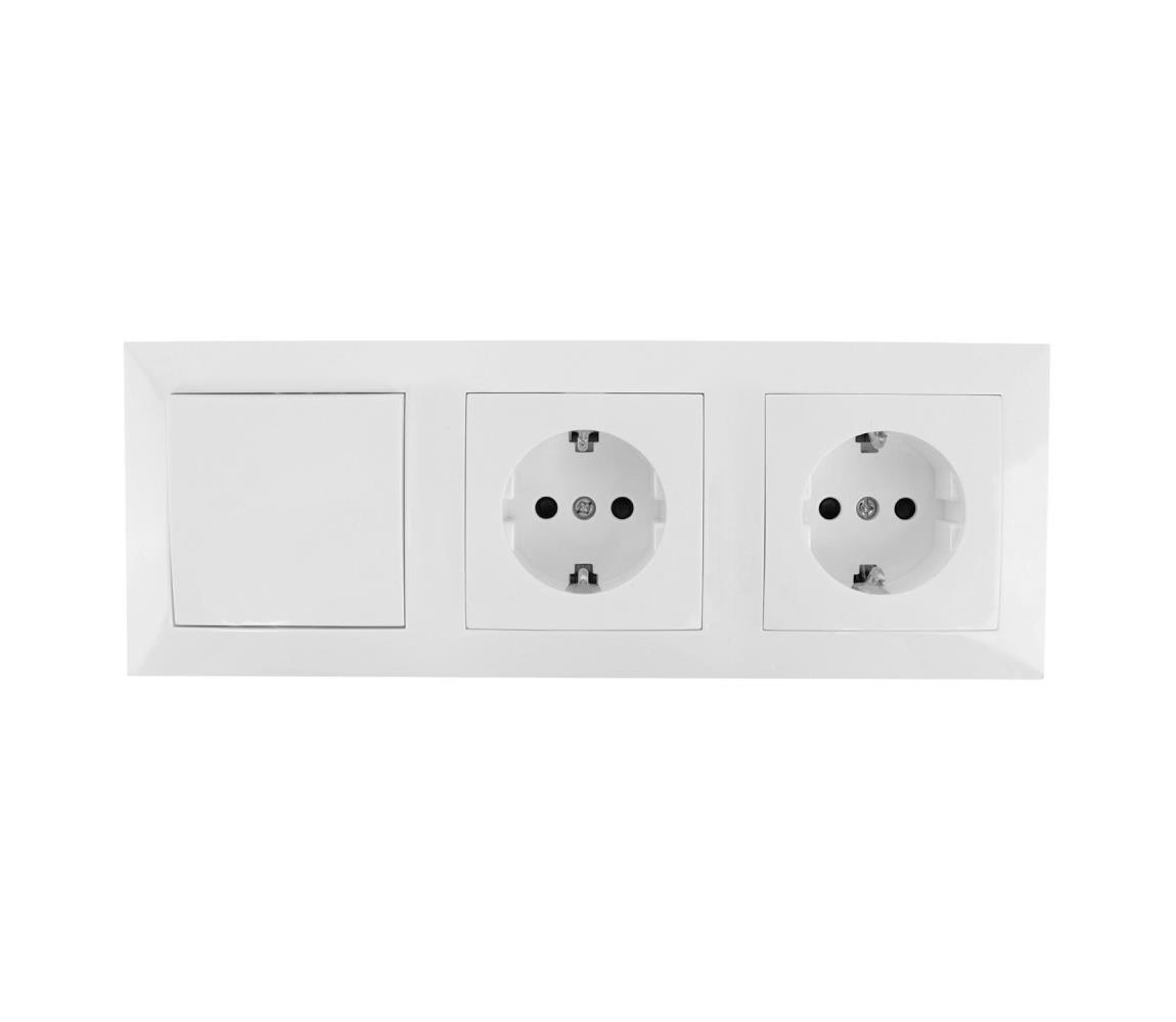 Kaks lülitit koos pistikupesaga. Pistikupesa pinge: 16A/250V. Lüliti pinge: 10A 250V. Paigaldusmeetod: süvistatav. Lõikeava mõõtmed: min. 195 x 54 x 40 mm. Pistikupesa tüüp: F (Saksa tüüp) - lisateavet leiate siit.