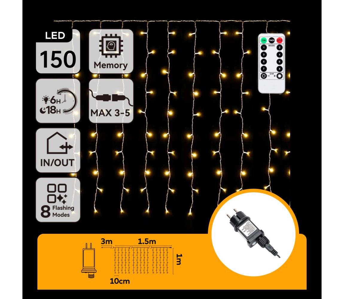 Aigostar - LED jõulukett välitingimustesse 150xLED/6W/230V/8 funktsiooni 1,5x1m IP44 soe valge + kaugjuhtimispuldiga