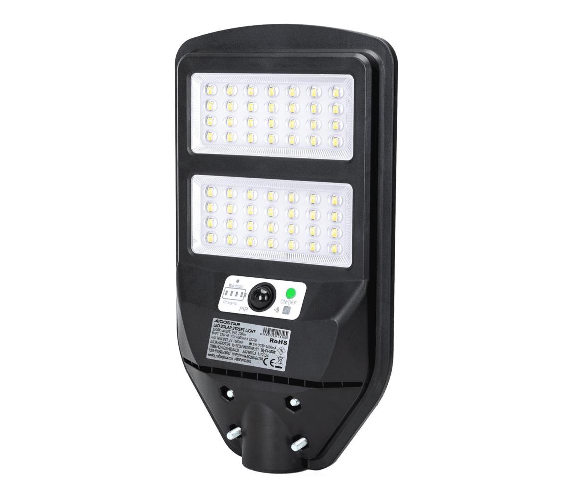 LED päikeseenergia tänavavalgusti hämariku- ja liikumisanduriga. Lihtne paigaldada. Juhtimine toimub komplektis oleva kaugjuhtimispuldiga. Avastamisnurk: 120°. Anduri ulatus: 5-8 m. Laadimisaeg: 4-6 tundi. Aku tööiga: kuni 12 tundi. Päevasel ajal laeb end päikesevalguse abil. Aku mahtuvus: 12000 mAh.