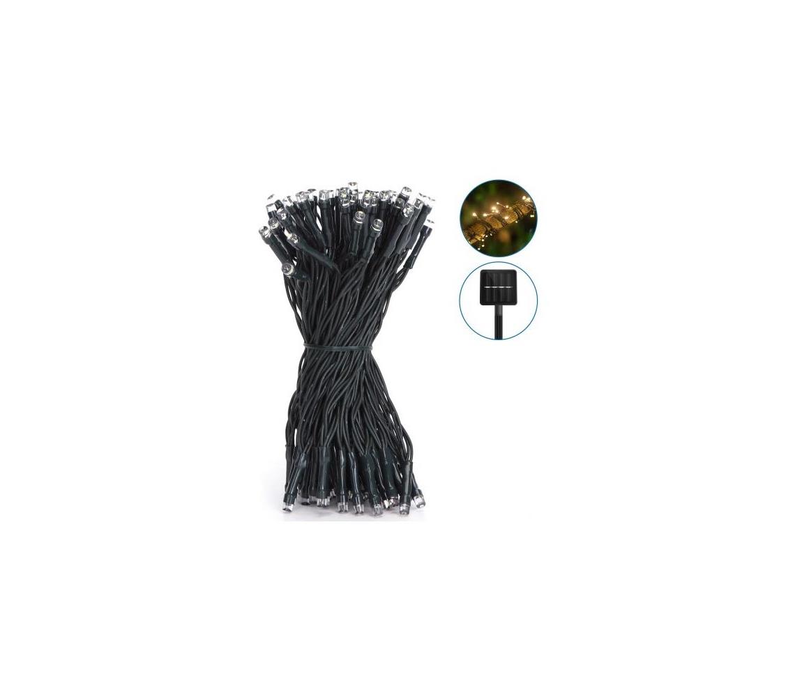Päikeseenergia jõuluahel, mis sobib suurepäraselt aedade kaunistamiseks. Kuna valguse intensiivsus on madal, kasutatakse seda dekoratiivse valgustina. Toide päikesepaneeli kaudu (70 x 70 mm). Ahel süttib automaatselt hämaruses. 8 valgustusfunktsiooni. Funktsioonide vahetamine toimub päikesepaneelil asuva lüliti abil. Laadimine: 4 - 6 tundi. Valgusaeg: 8 - 12 tundi. Valguse värv: soe valge. LED dioodide arv: 100. Valgustatud kaabli osa pikkus: 10 m. Toitekaabli pikkus: 2 m. Kaabli värv: selge.