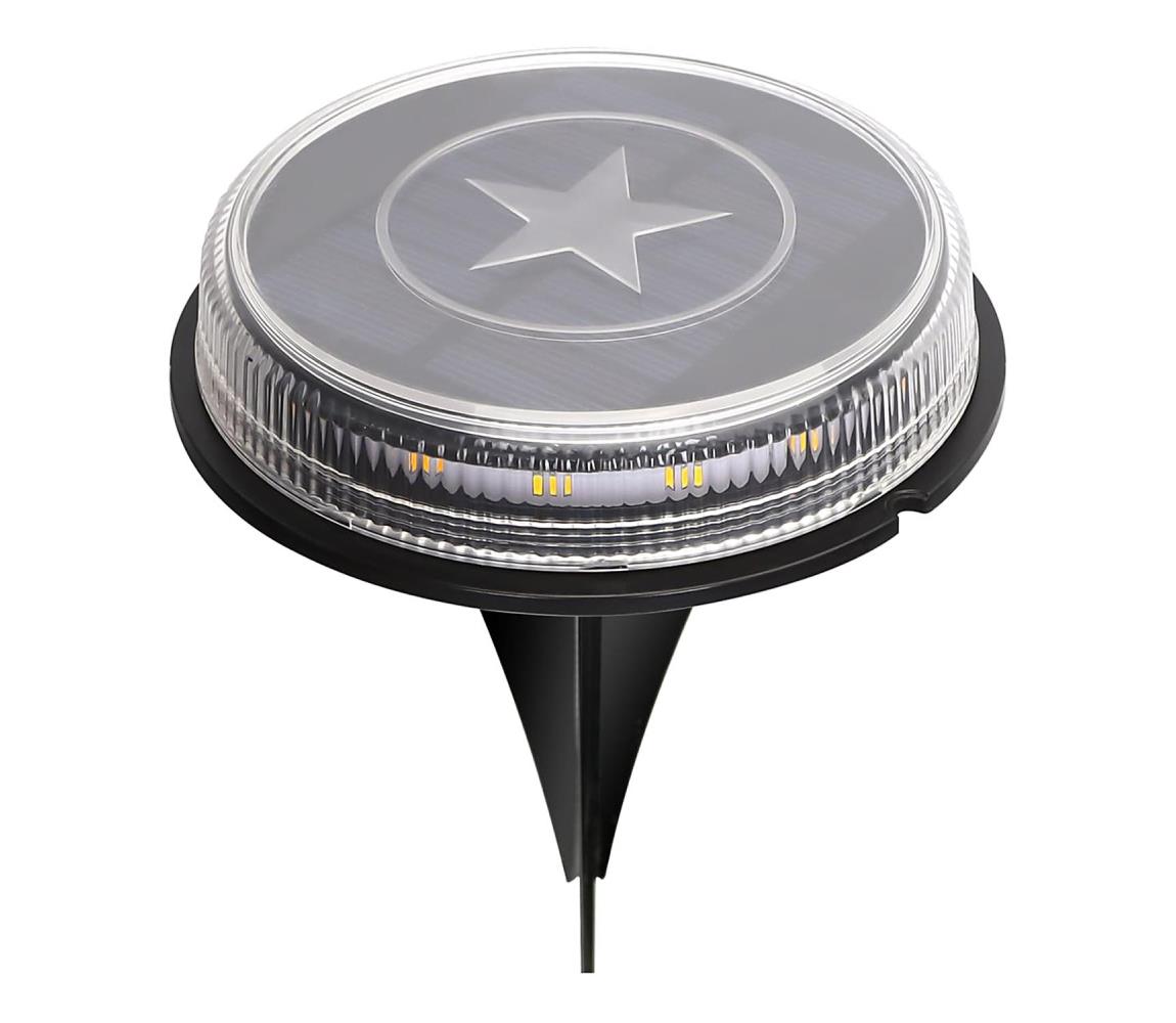LED päikese lamp. Kohandatud aedade ja teede valgustamiseks. Tänu madalale valguse intensiivsusele kasutatakse seda pigem dekoratiivse valgustina. Sisaldab hämarustundi andurit, mis süütab lambi automaatselt pimeduse saabudes. Kaitseklass: IP44. Valgusaeg: 8-12 tundi. Päikesepaneeli diameeter: 5,5 cm. Integreeritud Ni-MH aku, mille mahtuvus on 200 mAh 1,2V.