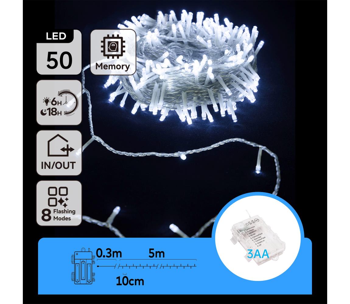 Aigostar -LED Väli valguskett 50xLED/8 funktsiooni 3xAA 5,3m IP44 külm valge
