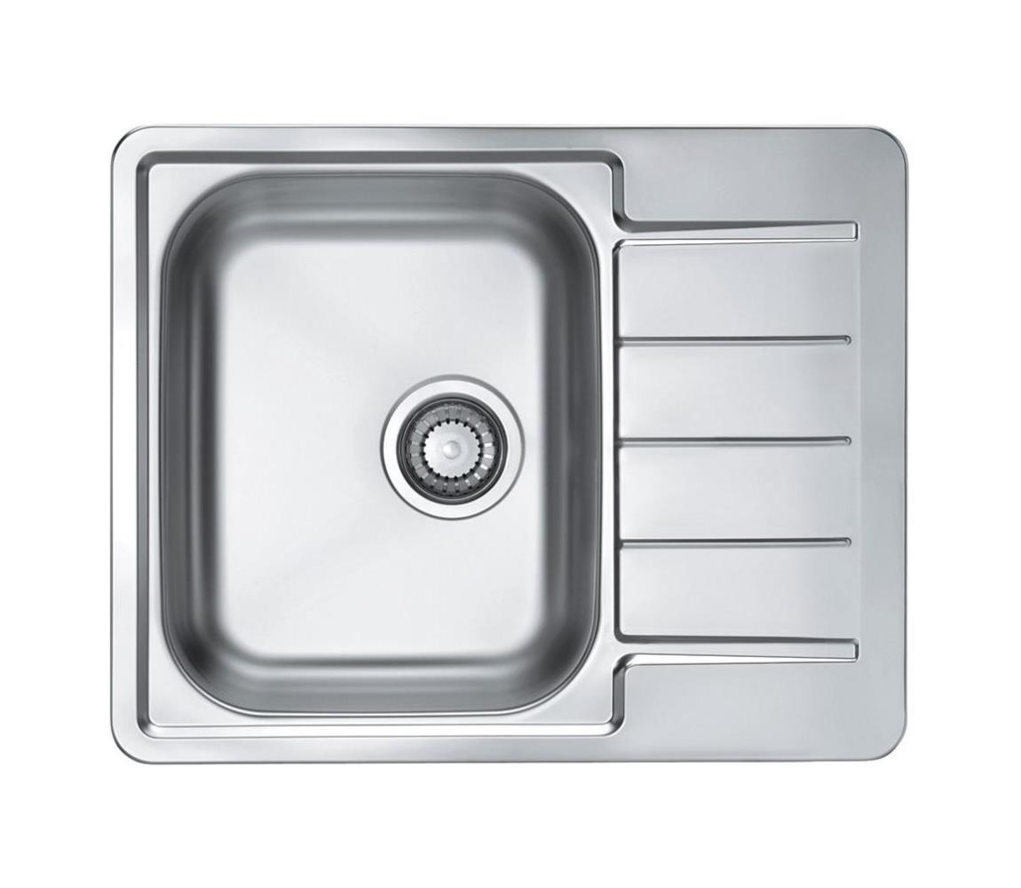 Klassikalise disainiga roostevabast terasest köögivalamu. Korrosioonikindel ja lihtne puhastada. Valamul on üks kauss, mis pakub piisavalt ruumi. Pööratav — kauss võib olla paigutatud kas vasakule või paremale. Käsitsi juhitav äravool — äravool sulgub ja avaneb sõela vajutades. Ülevool asub kausis. Ilma segistiavata. Tilgutusplaadiga. Valamu on paigaldatud tööpinna peale. Pakendi sisu: roostevabast terasest valamu, kinnitusklambrid ja tihendid, 3 1/2 restventiil, sifoon pesumasina äravoolu haruga.