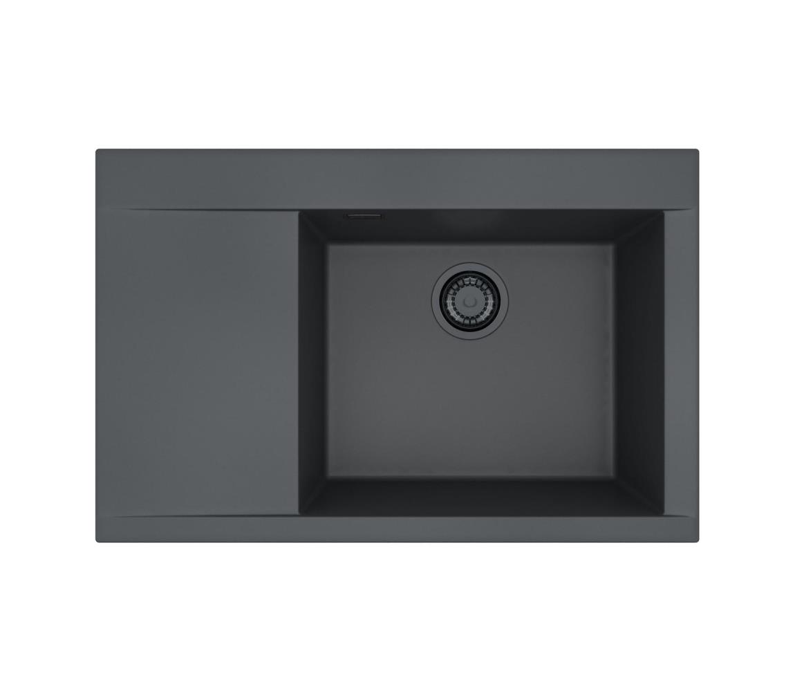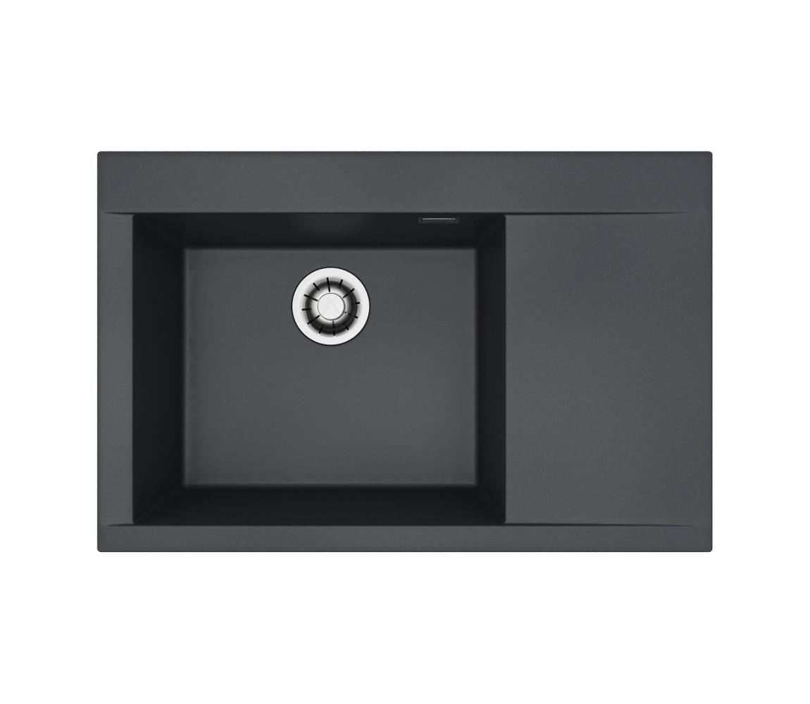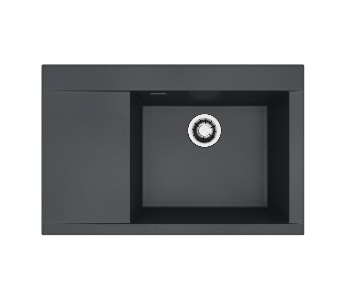Köögivalamu kaasaegse disainiga. Valmistatud kvaliteetsest graniidist, mis on kriimustuskindel, plekikindel ja talub kõrgeid temperatuure. Valamul on üks kauss, mis pakub piisavalt ruumi nõude pesemiseks. Käsitsi juhitav äravool - äravool sulgub ja avaneb sõeliku vajutamisega. Ülevool asub valamu kausis. Segisti ava puudub. Varustatud nõrutusplaadiga. Pealtpaigaldus - valamu paigaldatakse tööpinna kohale. See valamu paigaldatakse ainult silikooniga liimides. Komplektis: graniidist valamu, pealtpaigalduse kinnitusklambrid, 3 1/2-tolline sõelventiil, sifoon nõudepesumasina ühendusega.