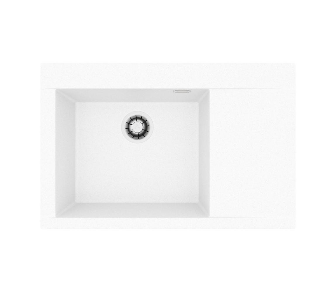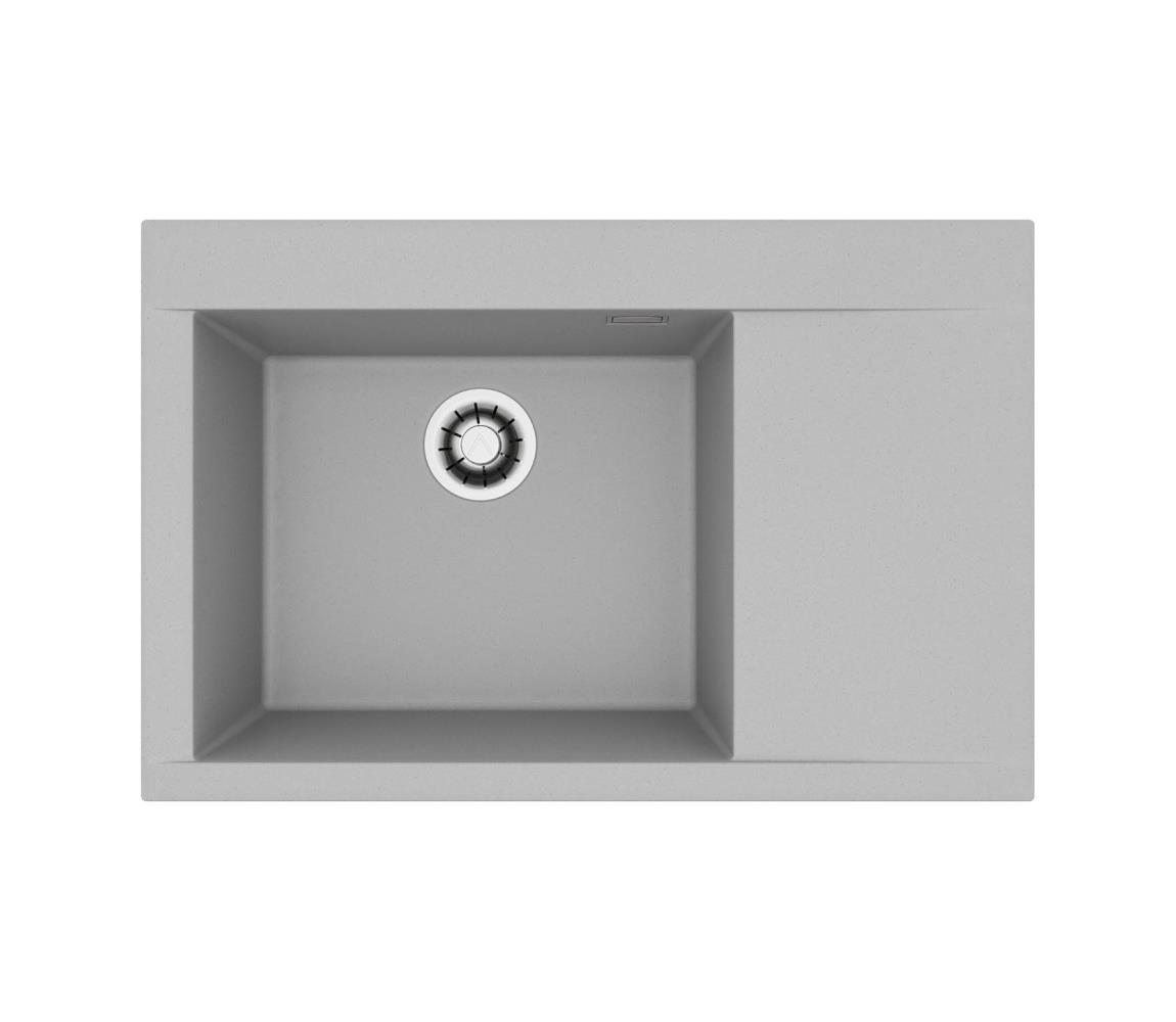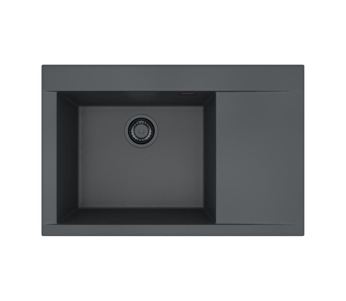 Köögivalamu kaasaegse disainiga. Valmistatud kvaliteetsest graniidist, mis on kriimustuskindel, plekikindel ja talub kõrgeid temperatuure. Valamul on üks kauss, mis pakub piisavalt ruumi nõude pesemiseks. Käsitsi juhitav äravool - äravool sulgub ja avaneb sõeliku vajutamisega. Ülevool asub valamu kausis. Segisti ava puudub. Varustatud nõrutusplaadiga. Pealtpaigaldus - valamu paigaldatakse tööpinna kohale. See valamu paigaldatakse ainult silikooniga liimides. Komplektis: graniidist valamu, pealtpaigalduse kinnitusklambrid, 3 1/2-tolline sõelventiil, sifoon nõudepesumasina ühendusega.