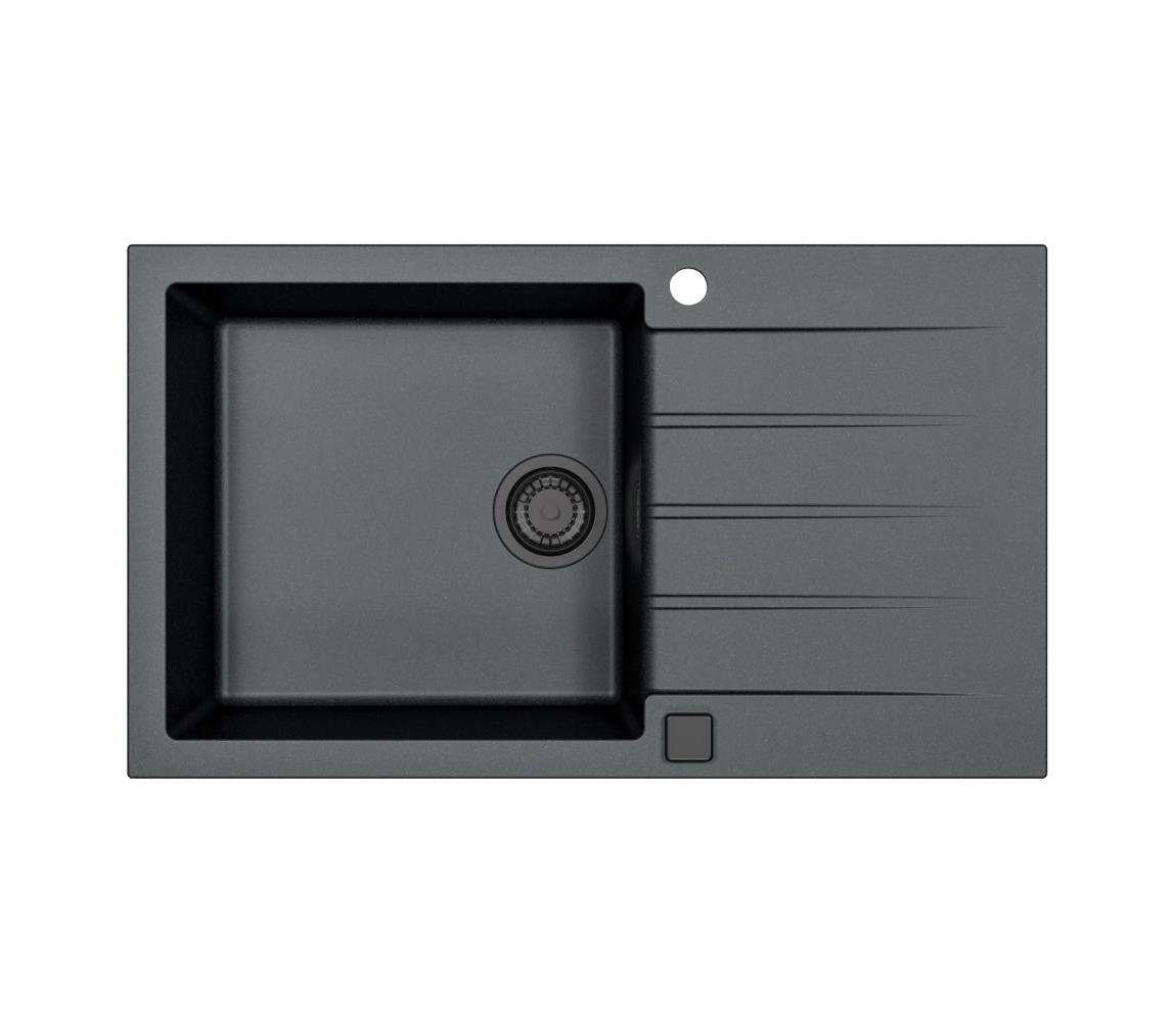 Köögivalamu kaasaegse disainiga. Valmistatud kvaliteetsest graniidist, mis on kriimustuskindel, plekikindel ja talub kõrgeid temperatuure. Valamul on üks kauss, mis pakub piisavalt ruumi nõude pesemiseks. Käsitsi juhitav äravool - äravool sulgub ja avaneb sõeliku vajutamisega. Ülevool asub valamu kausis. Segisti ava puudub. Varustatud nõrutusplaadiga. Pealtpaigaldus - valamu paigaldatakse tööpinna kohale. See valamu paigaldatakse ainult silikooniga liimides. Komplektis: graniidist valamu, pealtpaigalduse kinnitusklambrid, 3 1/2-tolline sõelventiil, sifoon nõudepesumasina ühendusega.