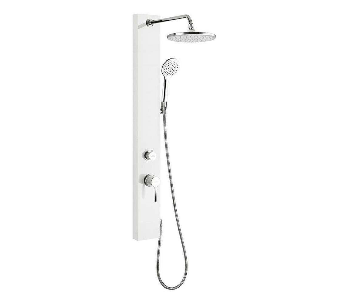 Dušipaneel on valmistatud plastist. See on valget värvi ja mõeldud seinale paigaldamiseks. Juhtimine toimub hoovaga ning paneelil on katlakivivastane funktsioon.