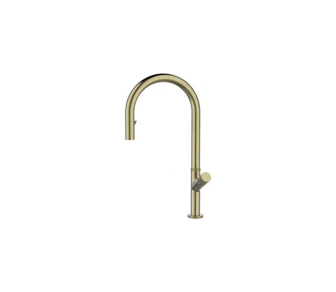 Ühehoovaga köögisegisti kõrgsurve ja pöörleva varrega. Kaasaegne kuldne viimistlus. Võimaldab lihtsat ja sujuvat vee temperatuuri ning vooluhulga reguleerimist. Komplekti kuulub: valamu segisti, ühendustorud, paigalduskomplekt.
