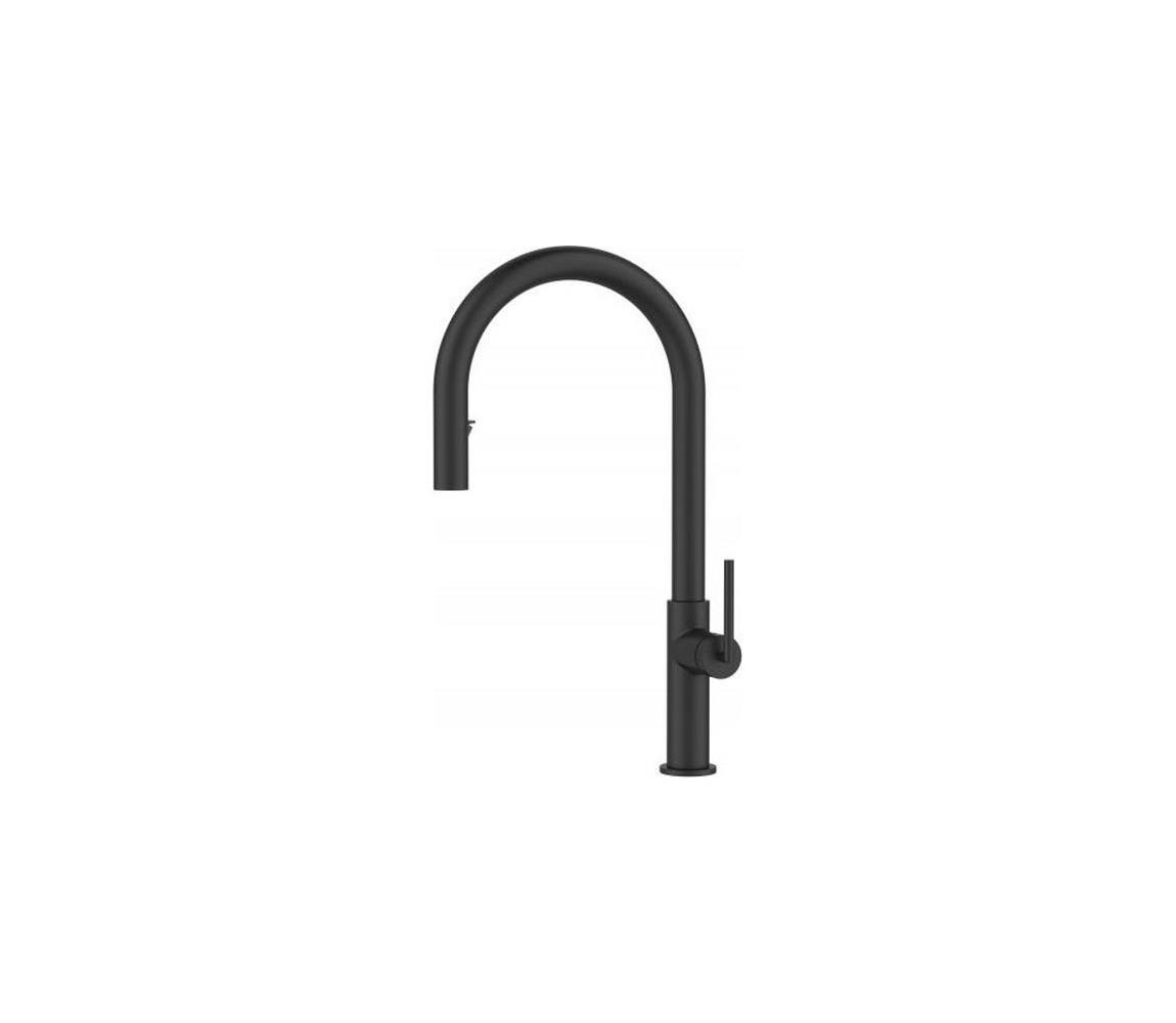 Ühehoobiga köögisegisti kõrgsurve ja pöörleva varrega. Kaasaegne must viimistlus. Võimaldab lihtsat ja sujuvat vee temperatuuri ning vooluhulga reguleerimist. Praktiline painduv vars, mis lõpeb dušipeaga. Paigaldus standardavasse läbimõõduga 35 mm. Komplekt sisaldab: valamu segisti, ühendustorud, paigalduskomplekt.