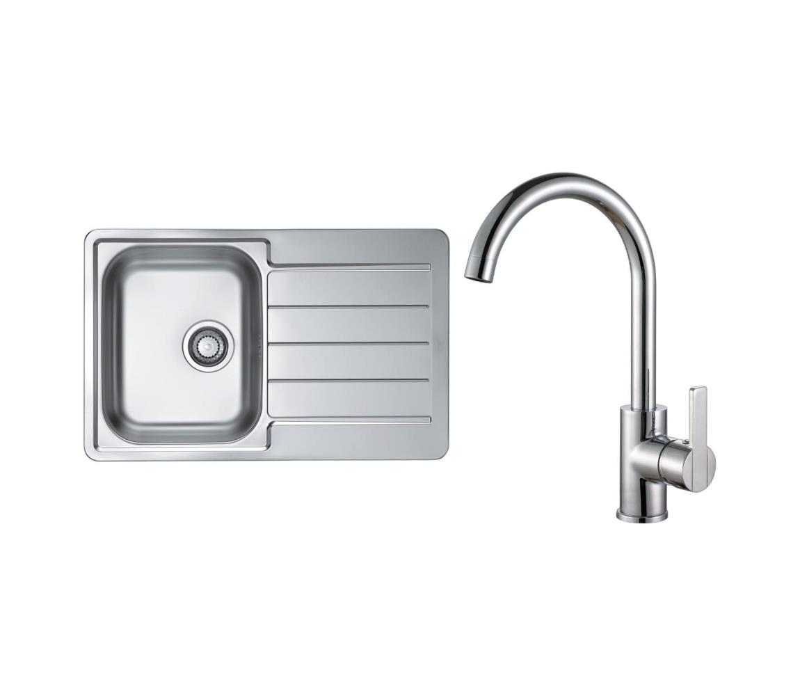 Köögivalamu koos kaasaegse segistiga. Köögivalamu LINE: Roostevabast terasest köögivalamu klassikalise disainiga. Valmistatud kvaliteetsest roostevabast terasest, mis on korrosioonikindel ja lihtsasti puhastatav. Valamul on üks suur kauss, mis pakub piisavalt ruumi. Pööratav — kaussi saab paigaldada nii vasakule kui paremale. Käsitsi juhitav äravool – äravool sulgub ja avaneb korvventiili vajutamisel. Ülevooluava asub valamu kausis. Ilma segistiavata. Kuivatusalaga. Paigaldamiseks tööpinna peale. Mõõtmed: 14,5 x 79 x 50 cm. Köögisegisti TONIA: Ühehoovaga köögisegisti kõrge veesuruga ja pööratava kaelaga. Tagab lihtsa ja sujuva vee temperatuuri ning vooluhulga reguleerimise. Paigaldus standardse 35 mm avasse. Mõõtmed: 29,5 x 17,4 x 5 cm. Komplekti kuulub: roostevaba valamu, kinnitusdetailid ja tihendid, korvventiil 3 1/2, sifoon nõudepesumasina liitmega, köögisegisti, ühendusvoolikud, paigalduskomplekt.