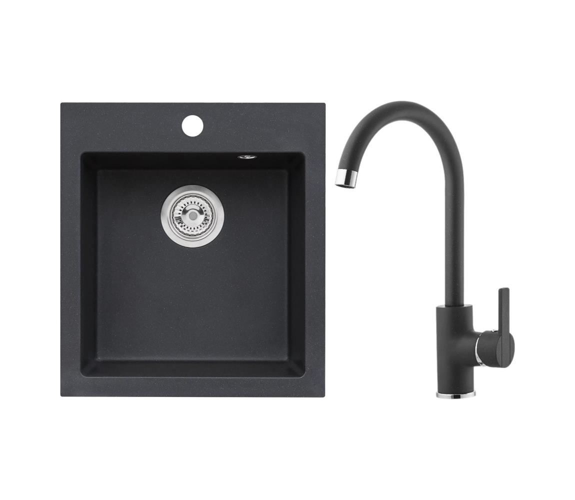 Köögivalamu koos modernse valamusegistiga. Köögivalamu CORTINA: Valmistatud kvaliteetsest graniitkomposiidist, mis on vastupidav kriimustustele, plekkidele ja kõrgetele temperatuuridele. Ühe kausiga, mis pakub piisavalt ruumi nõudepesuks. Käsitsi juhitav äravool - äravool sulgub ja avaneb sõelale vajutades. Ülevool asub valamukausis. Ava segisti jaoks. Mõeldud paigaldamiseks töötasapinna peale. Mõõtmed: 16 x 50 x 45 cm. Valamusegisti TONIA: Ühehoobiline köögisegisti kõrgsurve süsteemidele, pöörleva kaelaga. Kaasaegne graniitkomposiitviimistlus. Võimaldab vee temperatuuri ja vooluhulga lihtsat ja sujuvat reguleerimist. Paigaldus standardavasse 35 mm. Mõõtmed: 34 x 20,3 x 5 cm. Komplekti sisu: graniitkomposiidist valamu, restventiil 3 1/2, sifoon koos haruga nõudepesumasinale, valamusegisti, ühendusvoolikud, paigalduskomplekt.