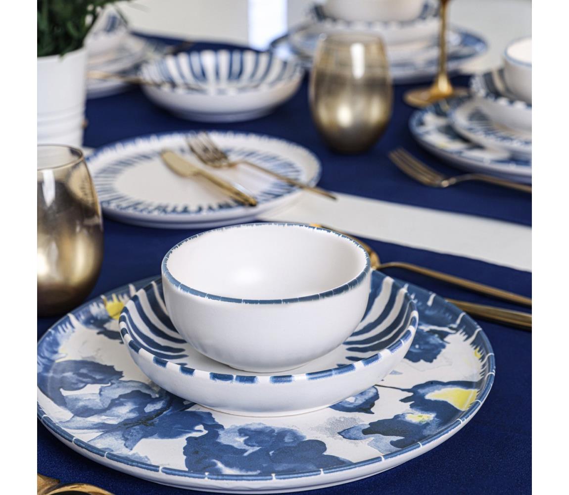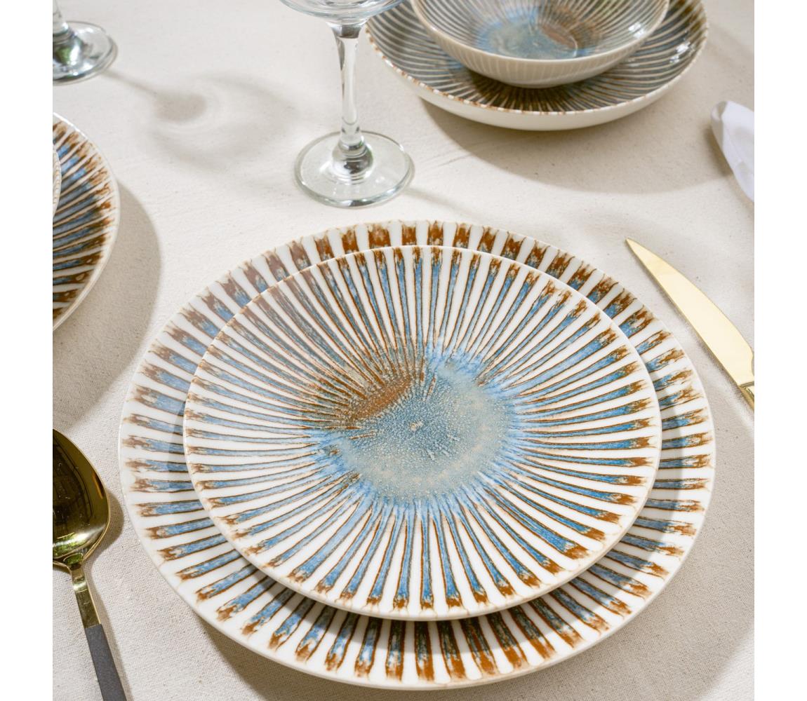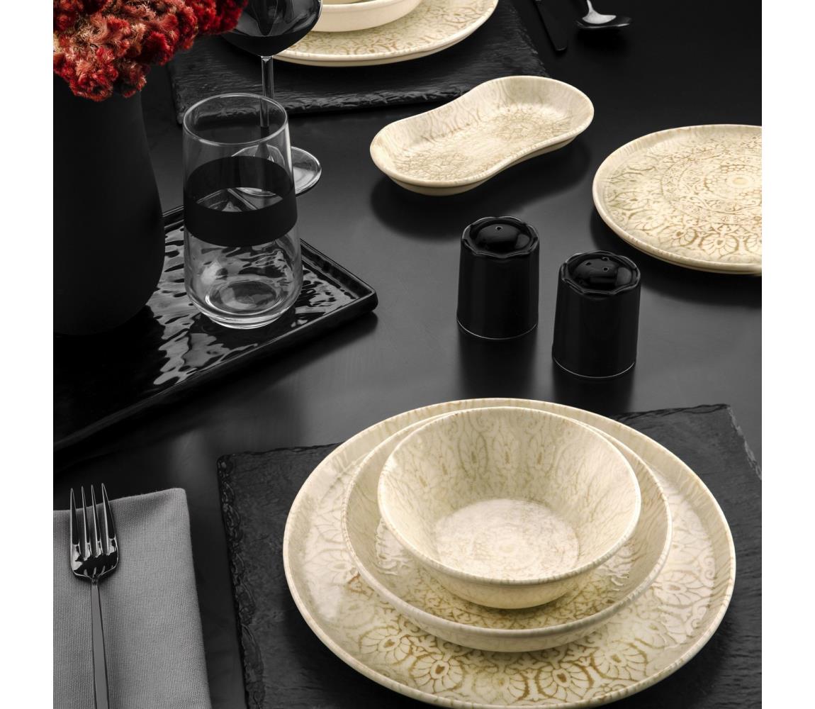 Elegantne sööginõude komplekt sobib nii igapäevaseks kui ka erilisteks sündmusteks. Valmistatud 100% kivikeraamikast, mis paistab silma kõrge tugevuse ja pikaealisusega. Kasutamiseks nõudepesumasinas (kuni 50 °C) ja mikrolaineahjus. Materjal ei ima vett ja on antibakteriaalne, mis tagab maksimaalse hügieeni kasutamisel. Lihtne puhastada ja talub temperatuurishokke. Pind on kõva ja kriimustuskindel. Komplekt sisaldab: Serveerimistaldrik: 30 cm (6 tk). Taldrik: 23 cm (6 tk). Kauss: 16 cm (6 tk). Magustoidutaldrik: 23 cm (6 tk).