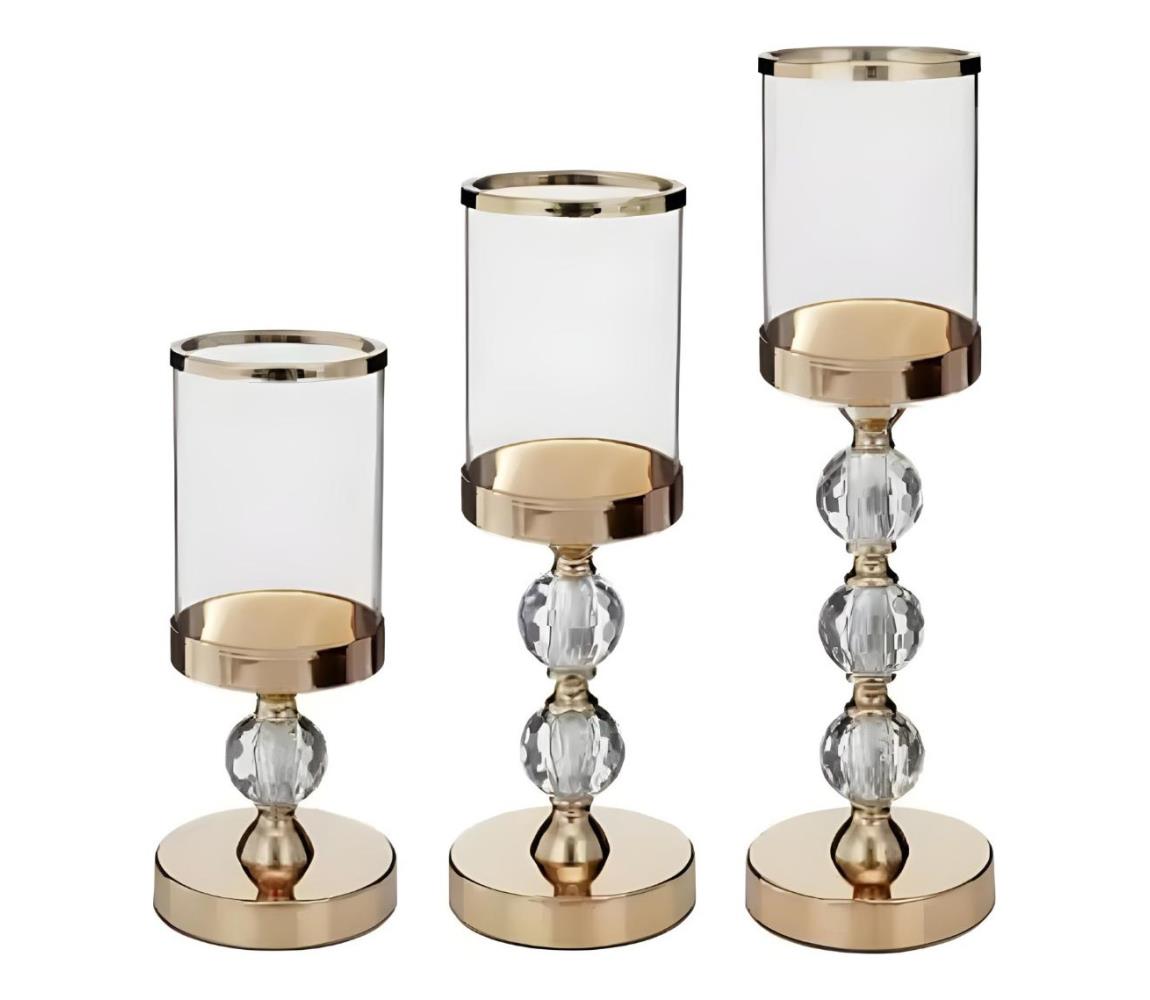 Elegantne kolmest metallist küünlajalast koosnev komplekt kuldse viimistlusega. Sobib ideaalselt pühadeks, pulmadeks ja muudeks pidustusteks. Valmistatud vastupidavast, pulbervärvitud terasest.