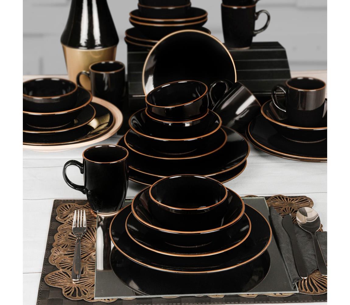 Elegantsne sööginõude komplekt, mis sobib nii igapäevaseks kui ka pidulikumaks einestamiseks. Valmistatud 100% kivikeraamikast, mis paistab silma suure tugevuse ja pika kasutusea poolest. Sobib kasutamiseks nõudepesumasinas (kuni 50 °C) ja mikrolaineahjus. Materjal ei ima vett ja on antibakteriaalne, tagades maksimaalse hügieeni. Lihtne puhastada ja talub temperatuurishokke. Pind on kõva ja kriimustuskindel. Komplekt sisaldab: Serveerimistaldrik: 26 cm (6 tk). Taldrik: 19 cm (6 tk). Koogitaldrik: 20 cm (6 tk). Kauss: 12 cm (6 tk). Serveerimisalus: 33 cm (2 tk). Kastmataldrik: 13 cm (6 tk). Teetass: 9 cm (6 tk). Tassialus: 14 cm (6 tk).